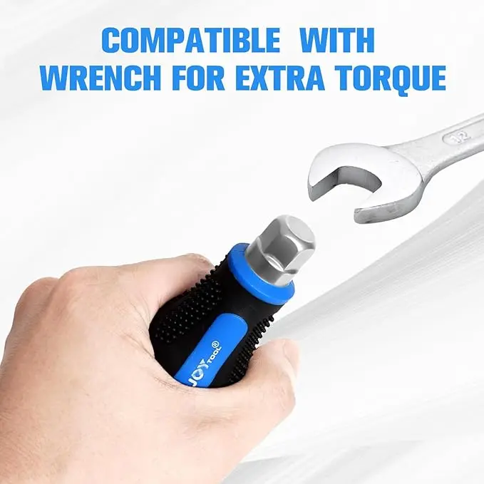 Heavy duty design- Shafts are made of chrome vanadium steel and heat treated, which brings the HRC to 56±2. Black finish blade is rust resistant and anti-corrosion. One-piece pole makes the screwdriver extra tough.