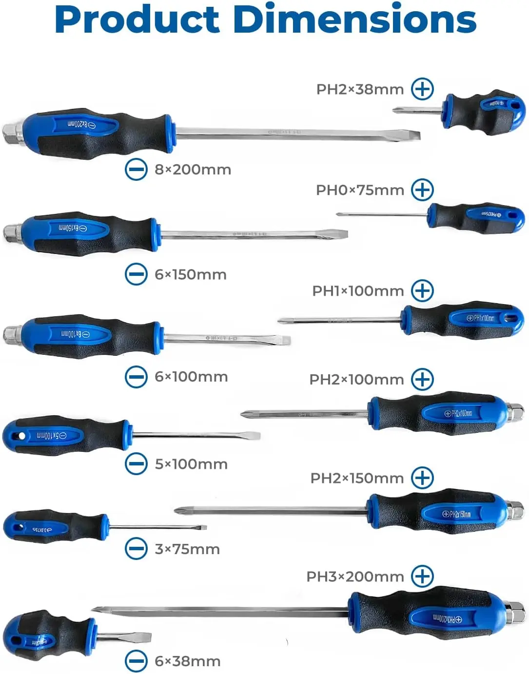 ·Easy to identify- sizes are printed on both the box and the screwdriver. You can easily recognize the size you need, and reorganize after use