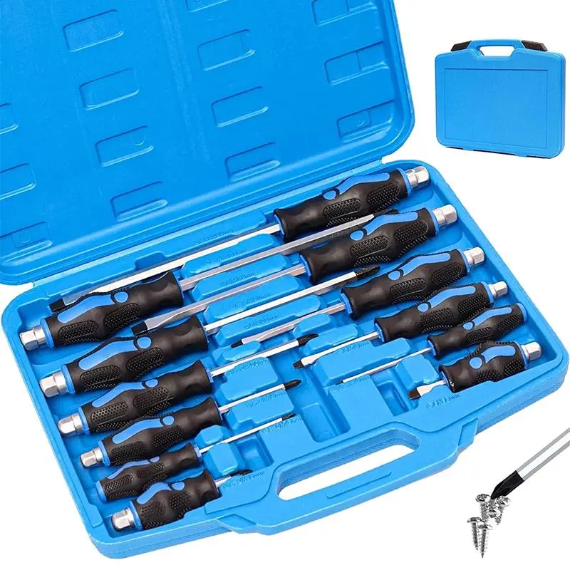 ·Multi-purpose use- 6 pieces slotted and 6 pieces phillips professional screwdriver, half with Go-Thru blades, all packed in a compact and portable carry case, covering your various needs in domestic appliances, automotive, and home improvement