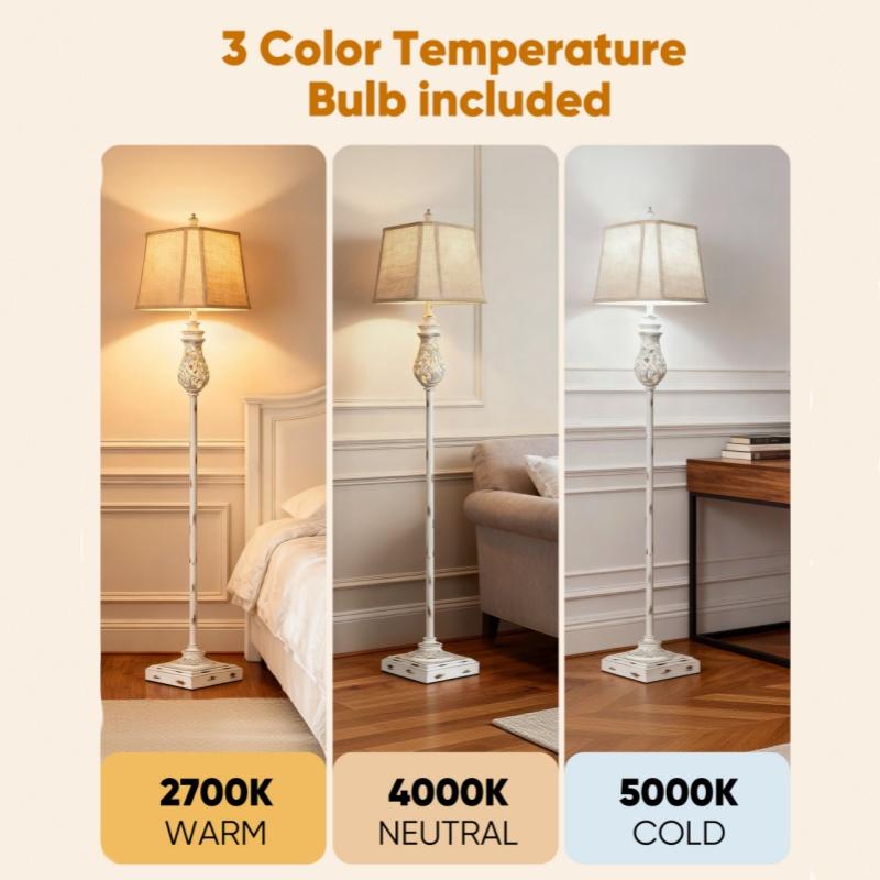 ·Built-in 3W LED Night Light: The integrated night light guides you in the dark when you wake up to grab a drink or use the bathroom—no more fumbling around. When it's movie night, it could also be used as a cozy ambient lamp to set the perfect living room vibe.4-Way Rotary Switch: This vintage floor lamp comes with a 9W, 2700K main light bulb. You can use the main light and night light separately, or both at the same time. The convenient rotary switch is hidden in the shade, allowing you to adjust the lighting to your needs or preferences—whether for sleep, movie nights, reading, or work.