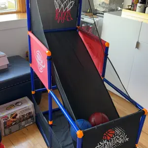 ·Countdown & Scoring Modes with Cheers:Feel the arcade adrenaline! A 60-second timer and scoring system (2 points per basket!) ignite friendly competition. Missed shots trigger a suspenseful countdown, while consecutive swishes spark jubilant cheers. This interactive feedback keeps kids motivated, turning practice into exhilarating play that sharpens focus and coordination.