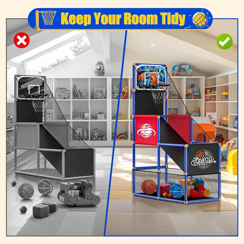 ·Smart Storage Design:No more chasing runaway balls! The mesh basket keeps balls contained, while the spacious base stores toys neatly. Teach responsibility by encouraging tidy-up time—less clutter means more space for fun, and lessons in organization stick long after the game ends.