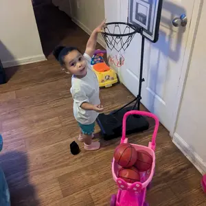 Great basketball hoop for kids! Very sturdy and easy to assemble. My child loves playing with it every day. Perfect size and quality for indoor and outdoor fun. Highly recommend!😍
