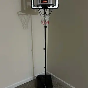 My boy loves his new basketball stand. It looks great and sturdy. Easy to assemble. It comes with scoreboard and timer!