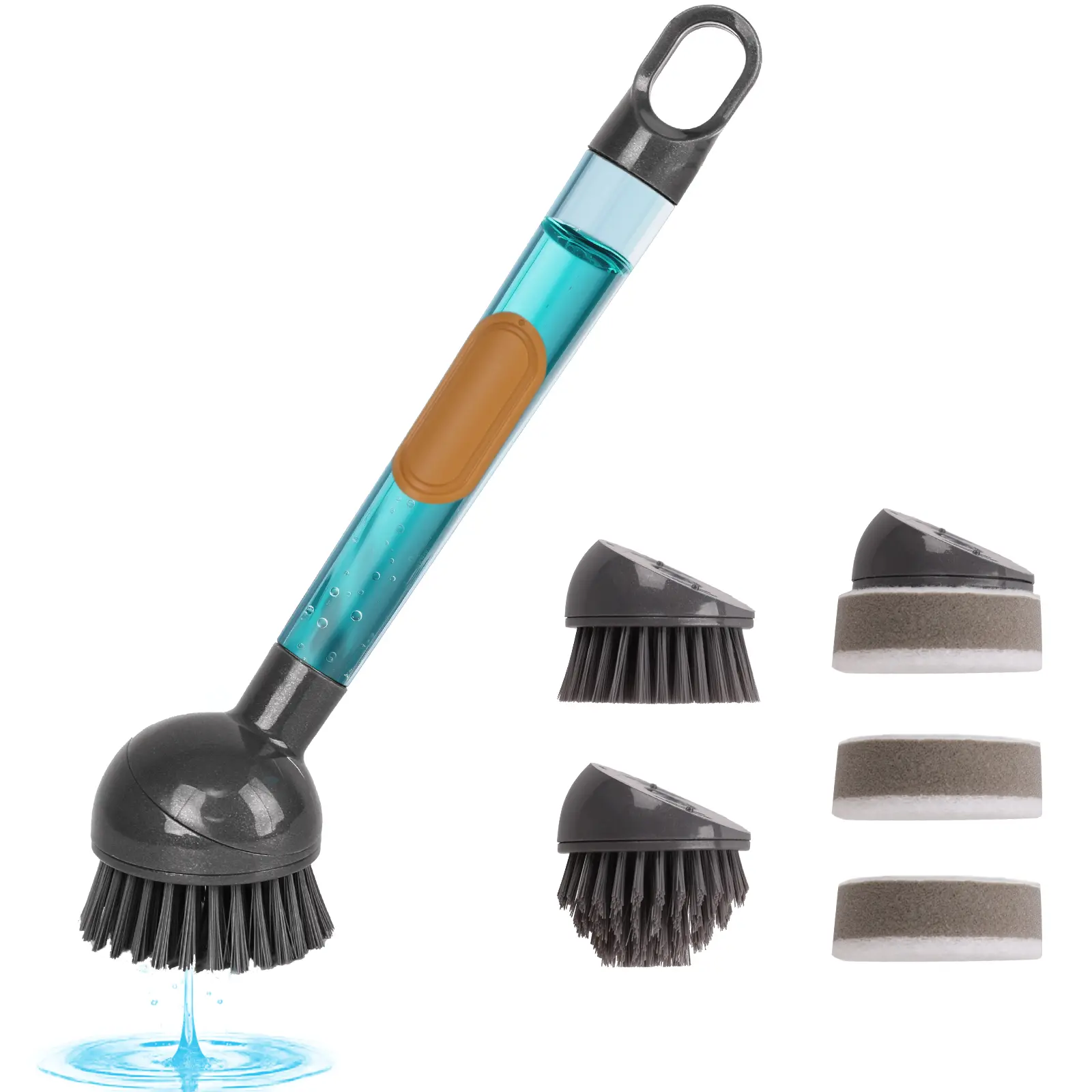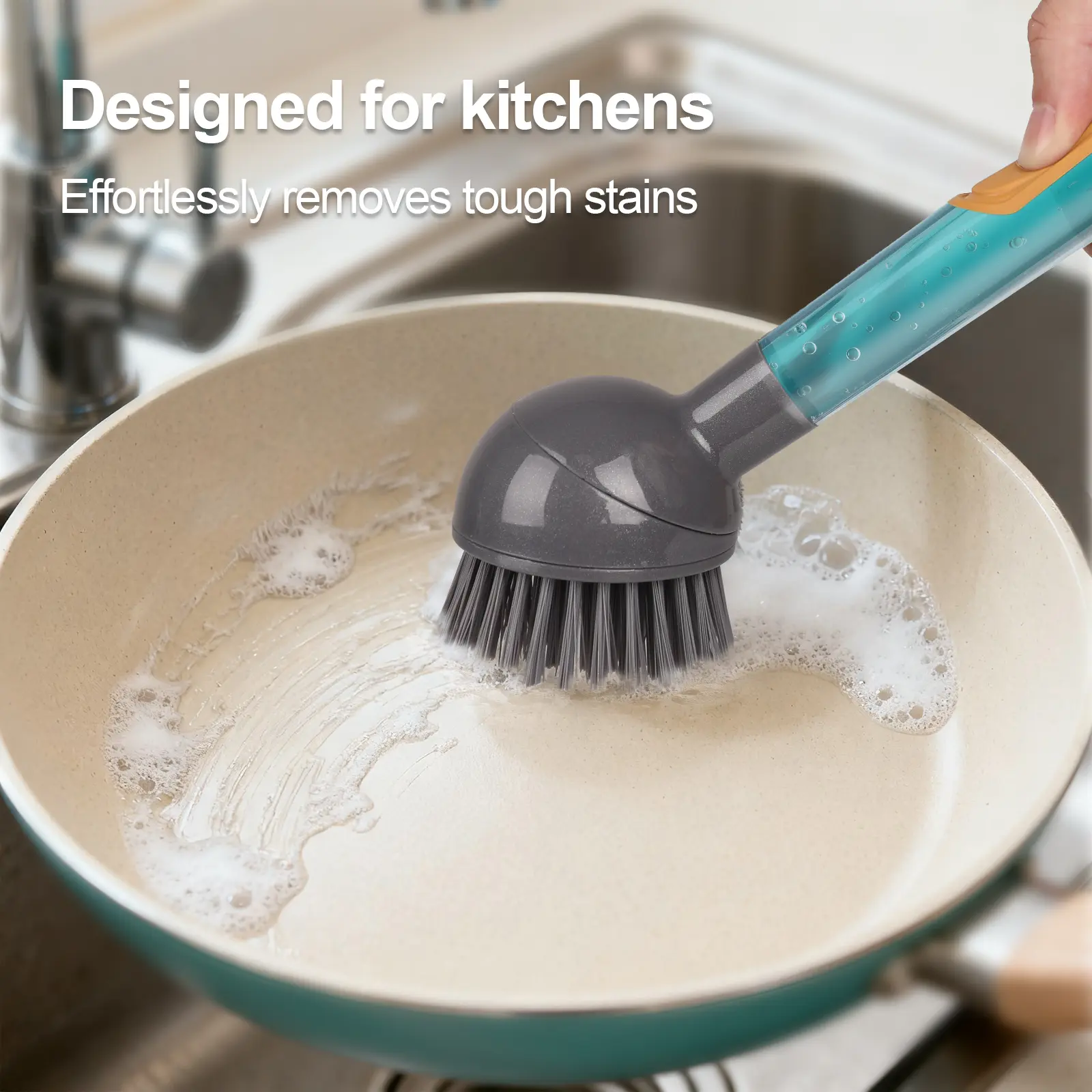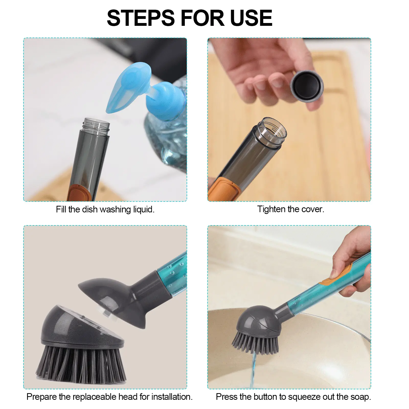 5. CuLiDing Soap Dispensing Dish Brush Storage Set with 360° Rotating Head, 3 Brush Heads & 2 Scouring Pads, Durable & Eco-friendly, Versatile for Dishes, Sink, Pans, Pots