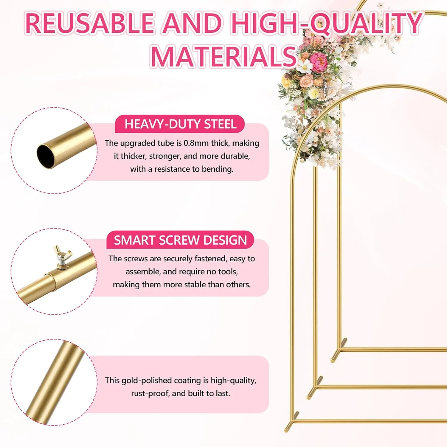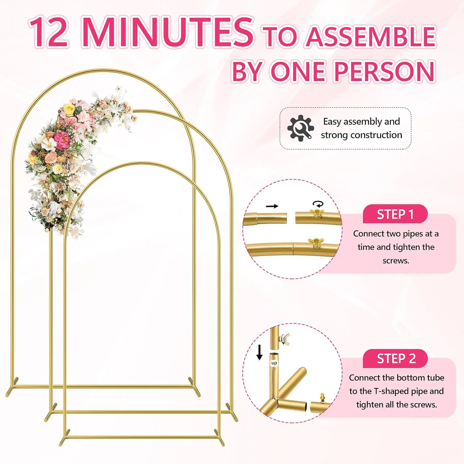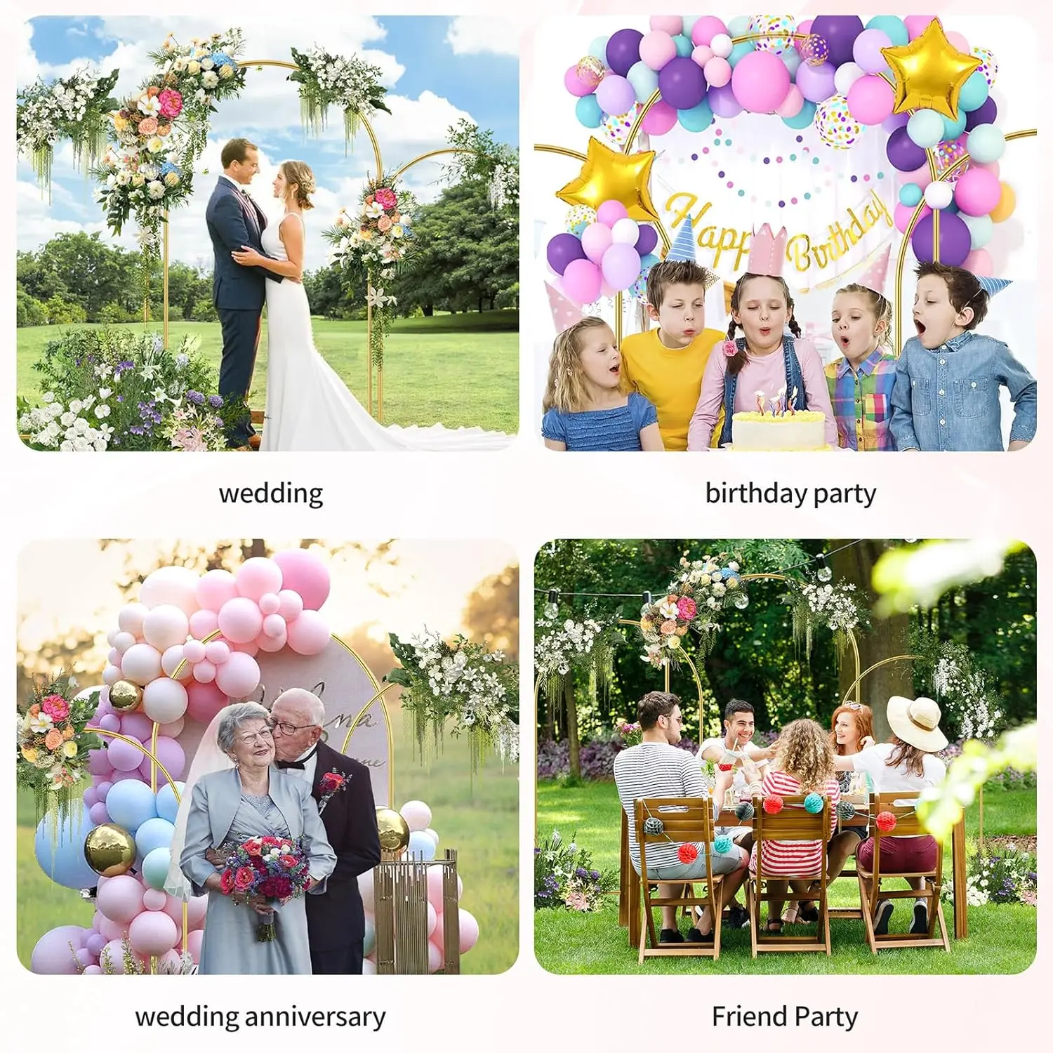 ·Stable & Sturdy Construction: HOOPLE circle balloon arch frame is constructed from premium quality Galvanized Iron that is strong and durable. The design of the 2 metal bases and 2 water bags provide further stability, prevents the arch from tipping over easily, and remains firm even on uneven surfaces and in inclement weather.