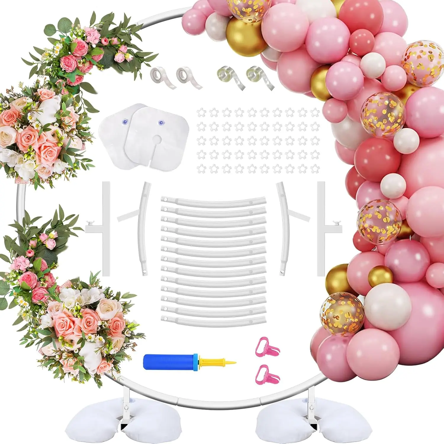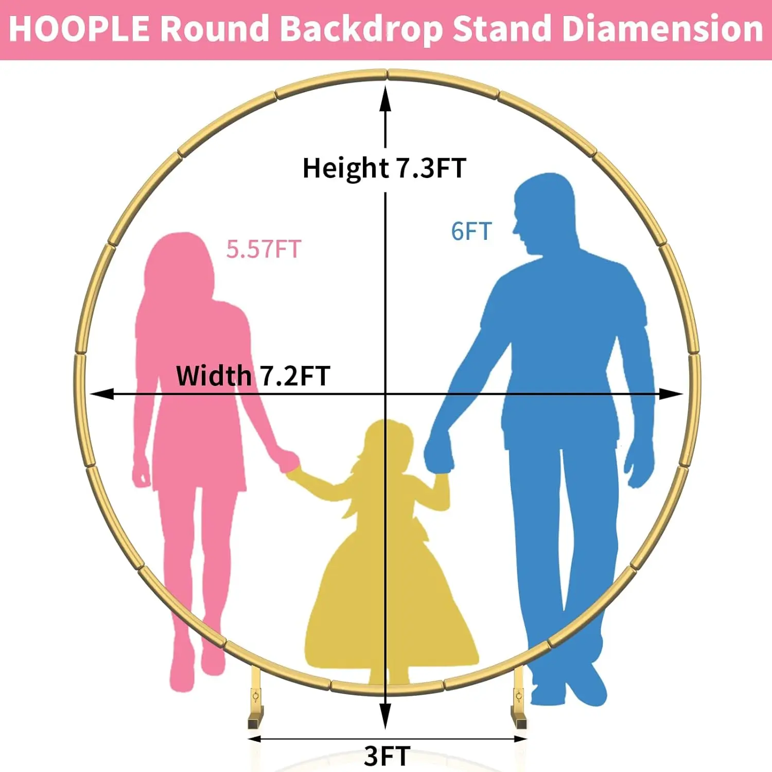 I bought the 7.2ft white Round backdrop stand. Easy to assemble and take apart. I used it for a baby shower at the park it came with weights for the bottom of the stand legs all we had to do was add water. It did not fall at all and it was windy I did buy the backdrop separately it was true to size.