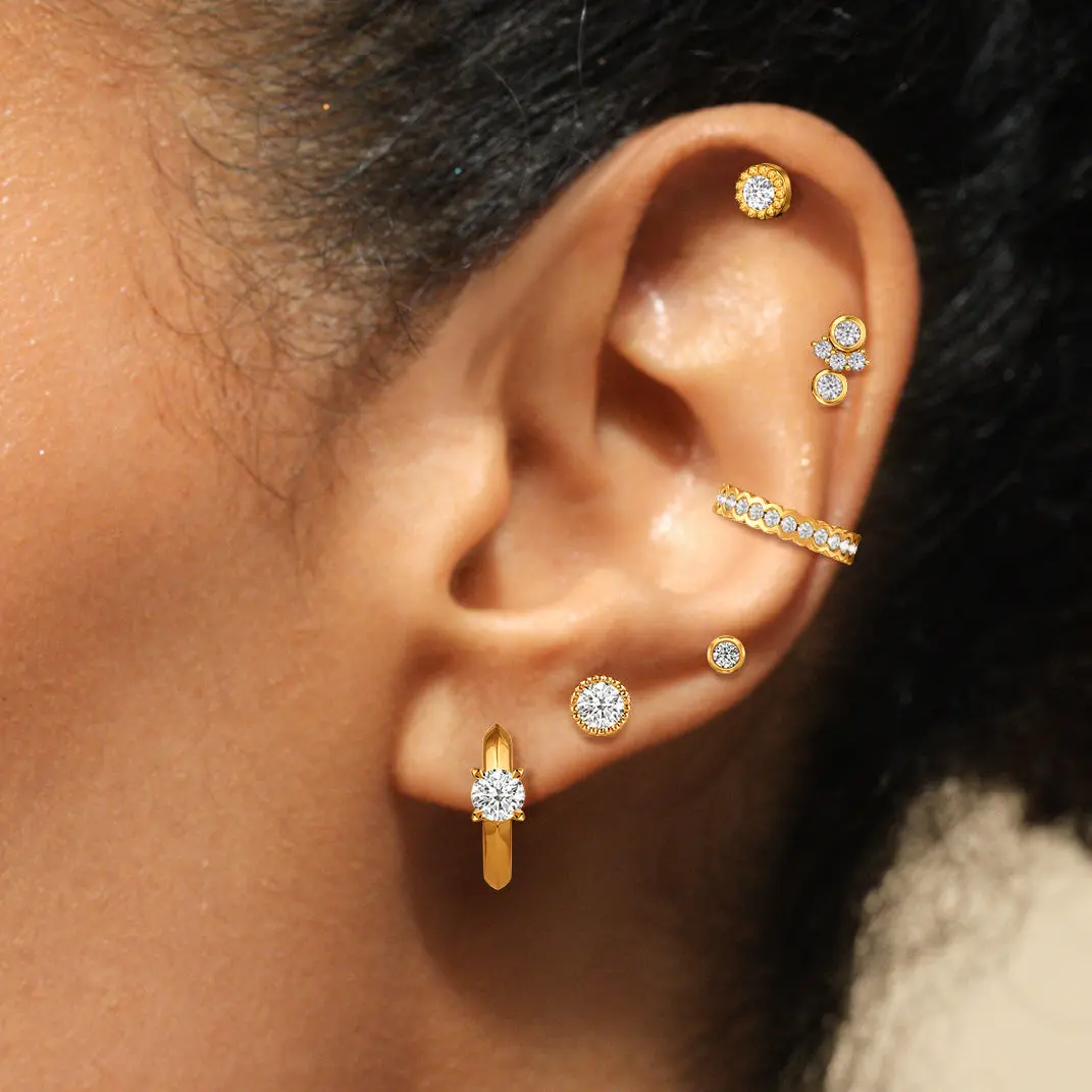 These classic studs have a modern clasp. The flatback style features the versatile profile of round bezel studs that complement anyone. Compared to traditional studs, this pair has a flat, smooth backing that offers comfort for all-day and all-night wear.