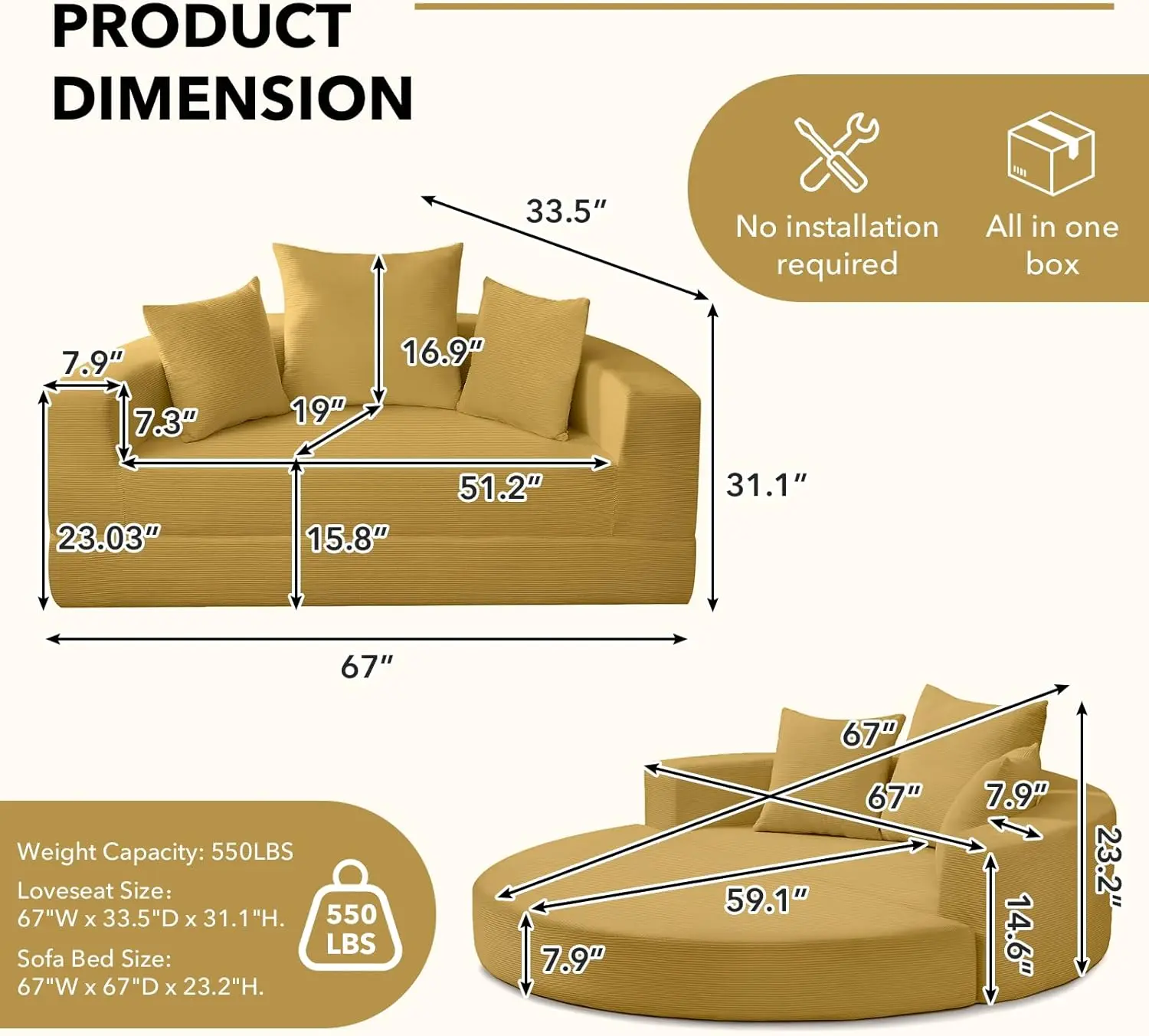 ·Corduroy boneless cloud couch design with high-density foam filling.No frame for ultimate relaxation and creates a cozy lounge sofa experience.Soft corduroy fabric cover is durable and super comfy to touch,High-density foam futon sofa bed designed for long-lasting performance.