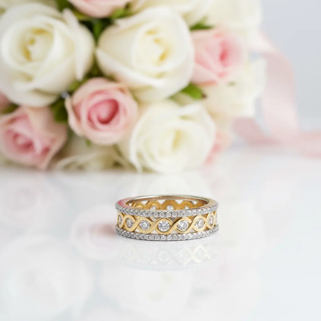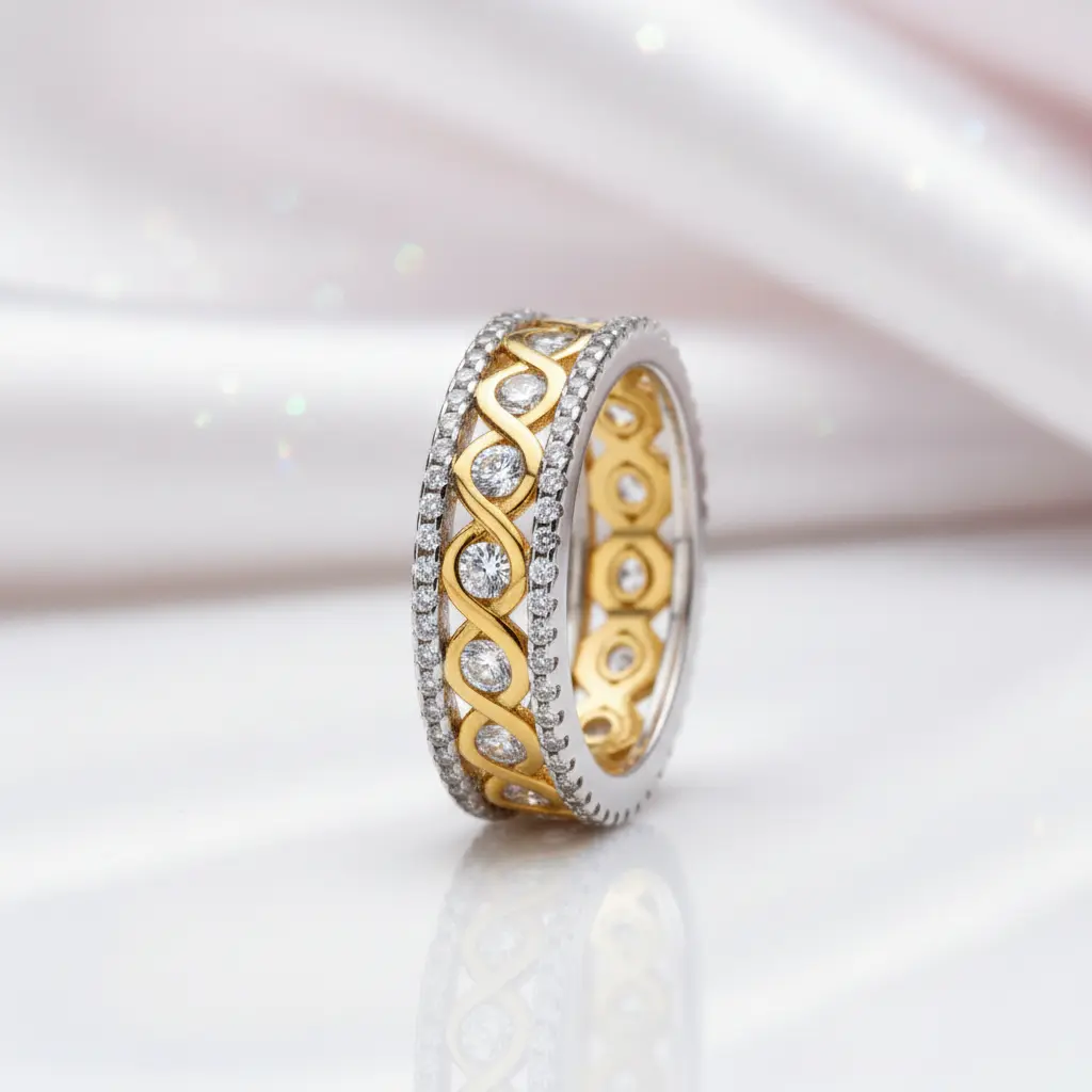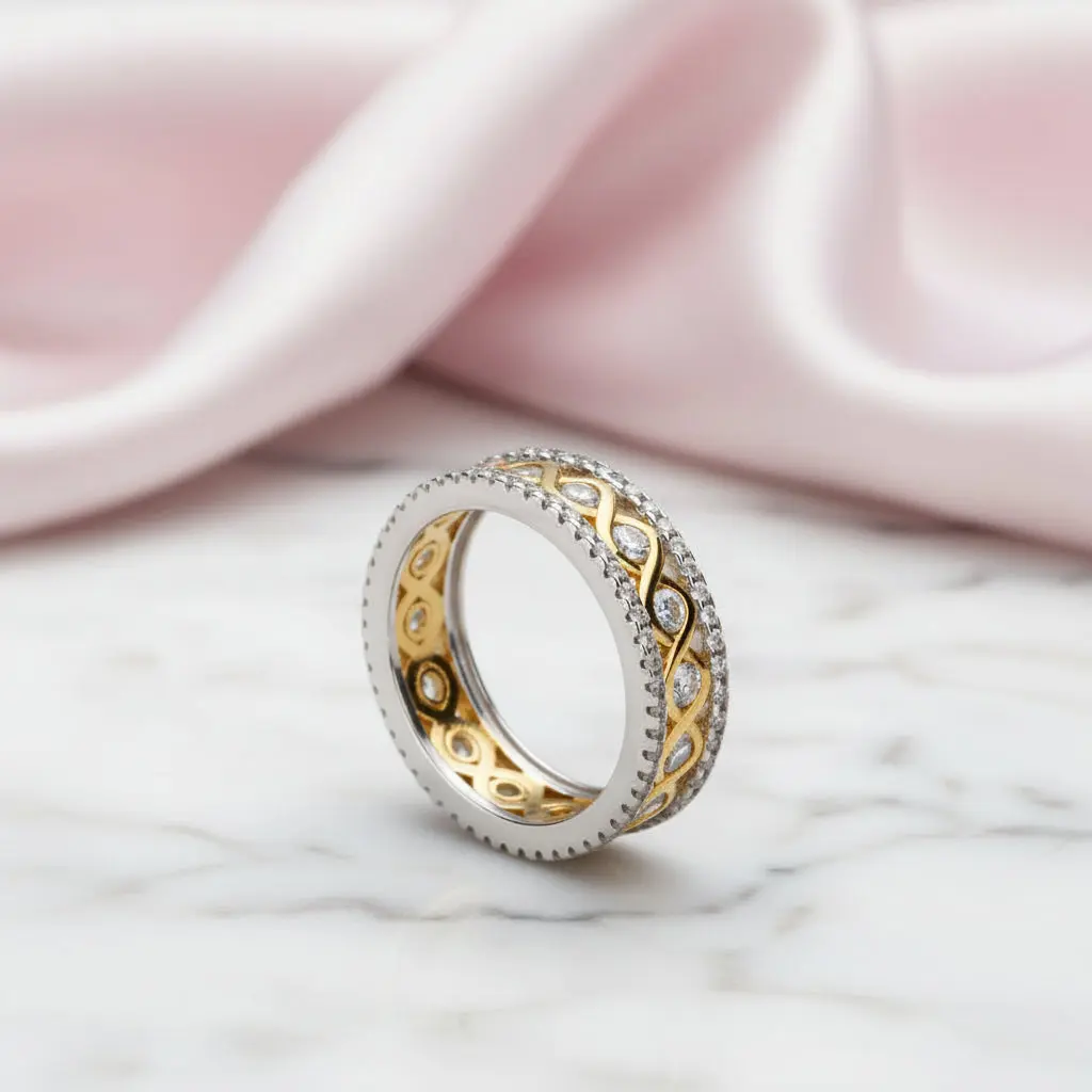 Round Diamond Option Two-Tone Infinity Ring
