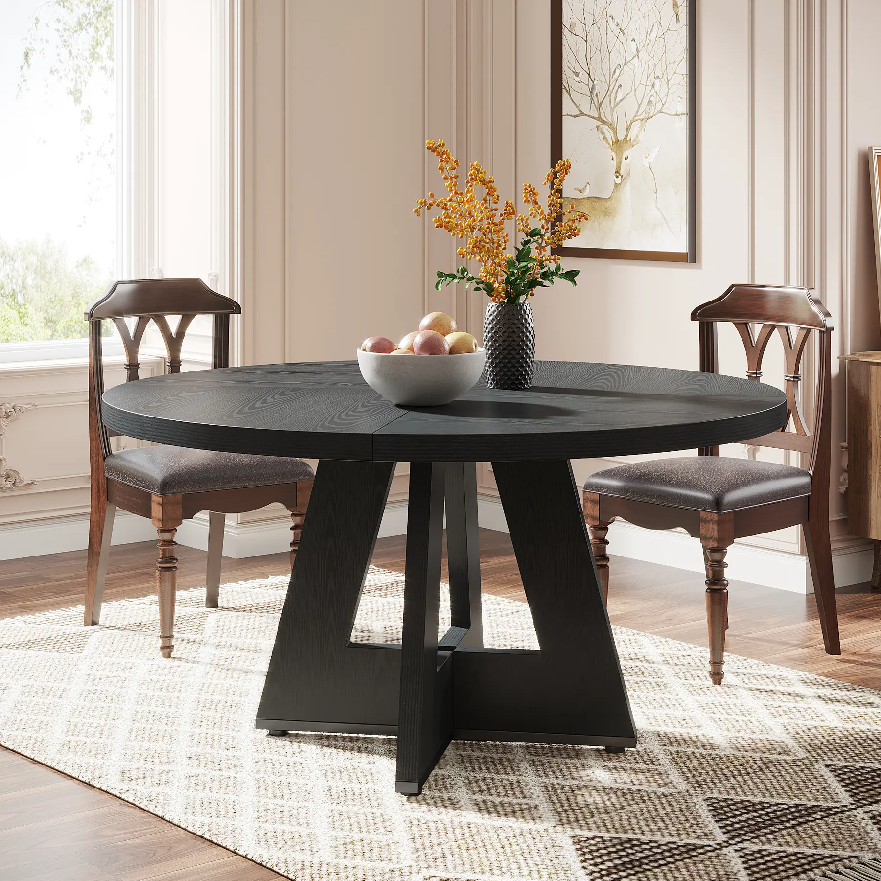 Tribesigns round dining Table with 47 inch spacious tabletop provide ample space for up to 6 people.