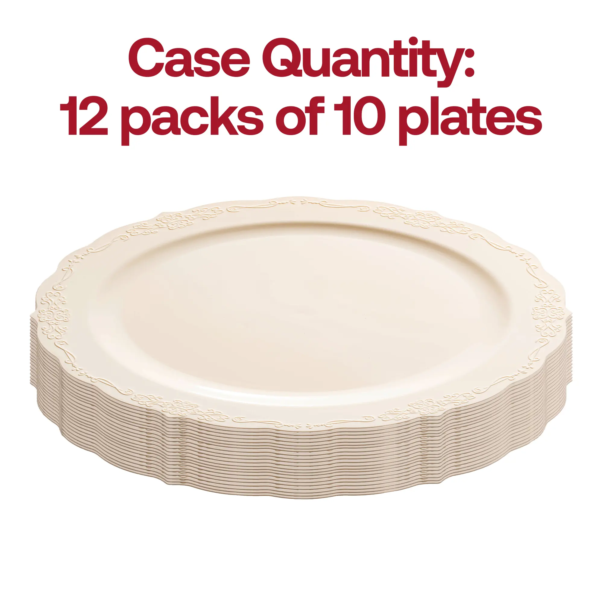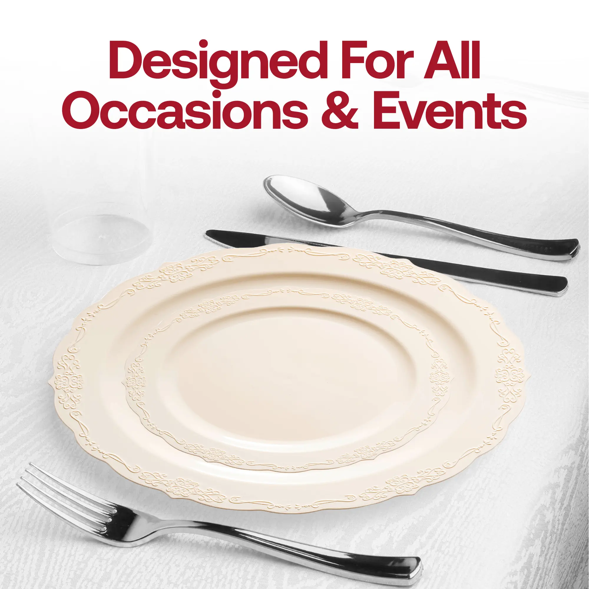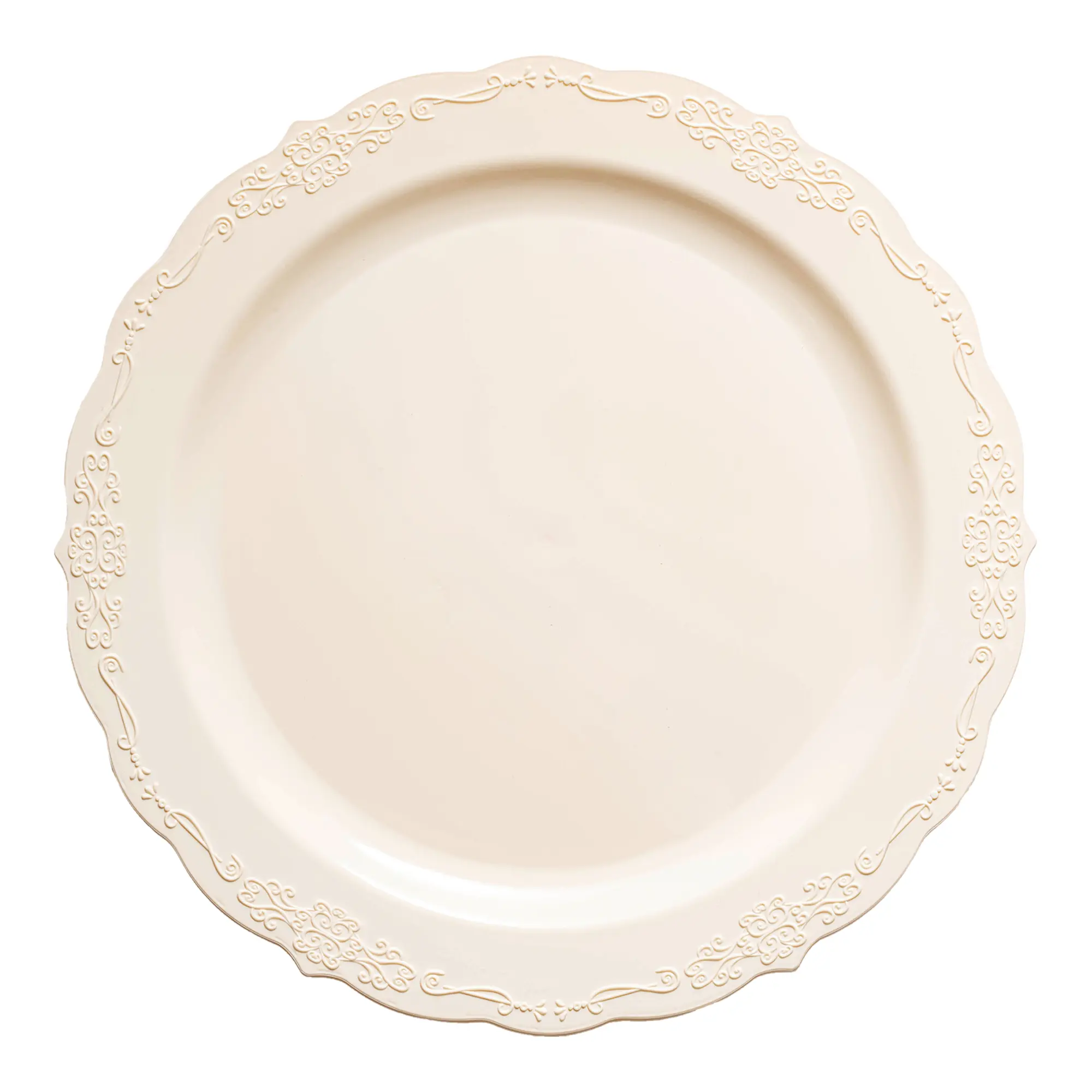 If you want to add a touch of elegance and style to your next special event, these fabulous vintage plates are a perfect choice. These plates will help add the extra elements you're looking for and enhance your table decor style. The refined scalloped rims pair beautifully with the vintage-inspired patterns making these beautiful ivory plates an elegant addition to the table decor of your wedding reception, birthday party, baby shower, or any other special occasion you organize.