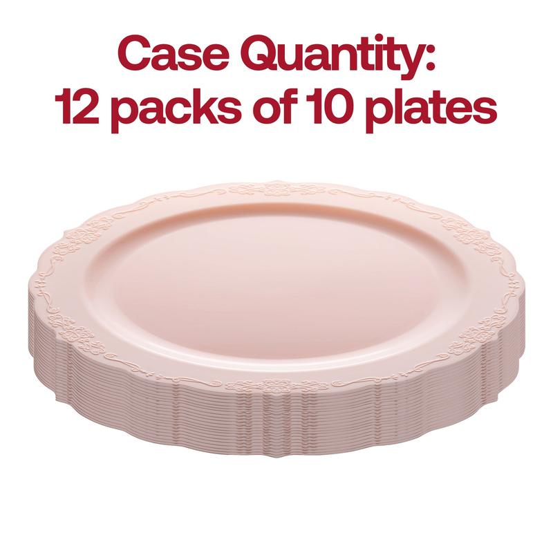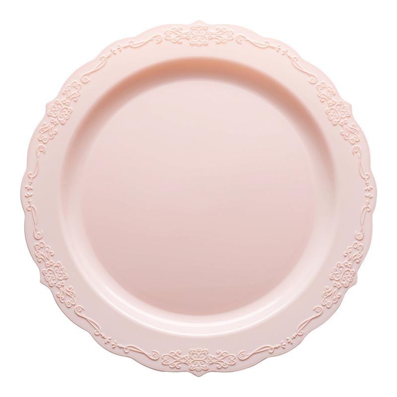 Product Name: Pink Vintage Round Disposable Plastic Dinner Plates (10")