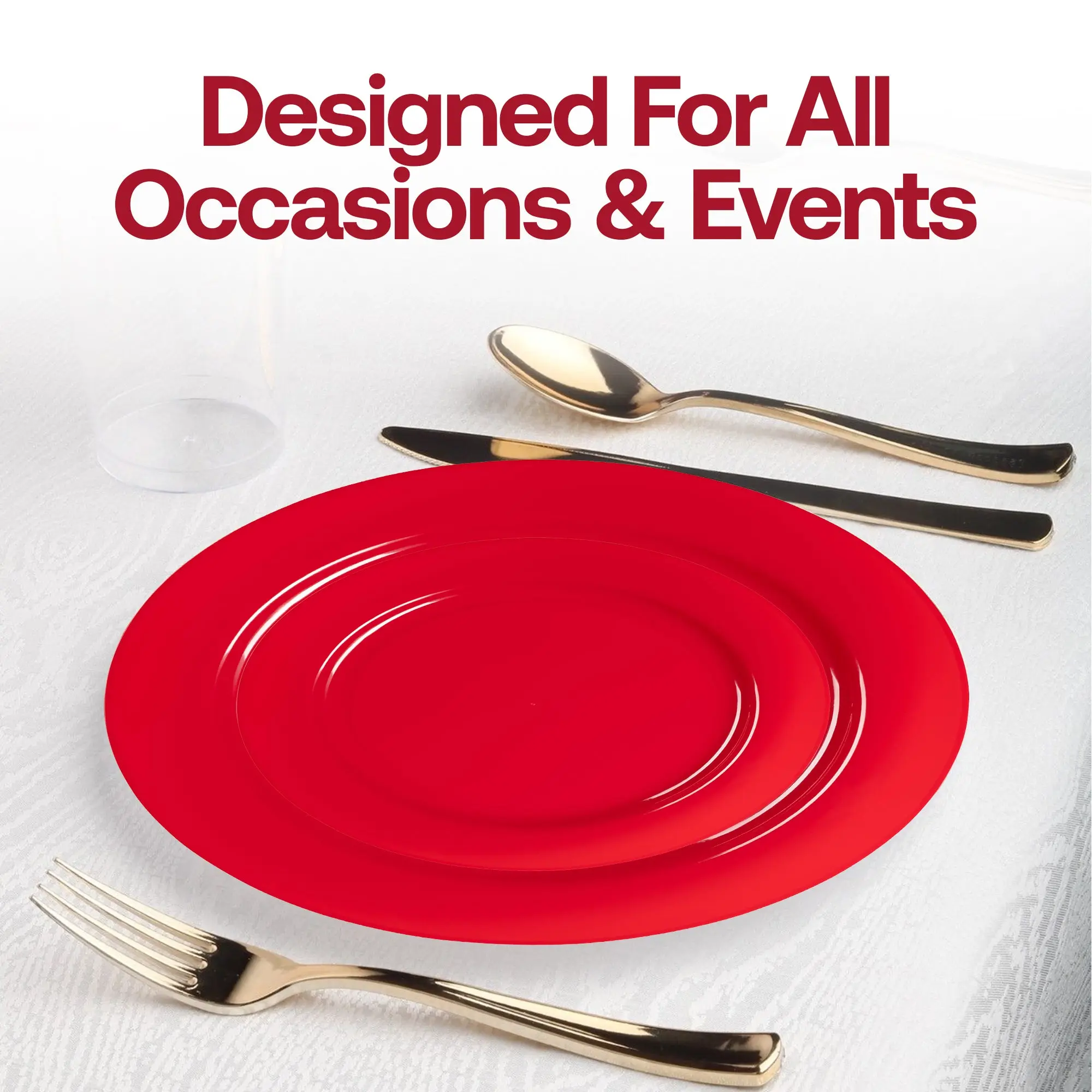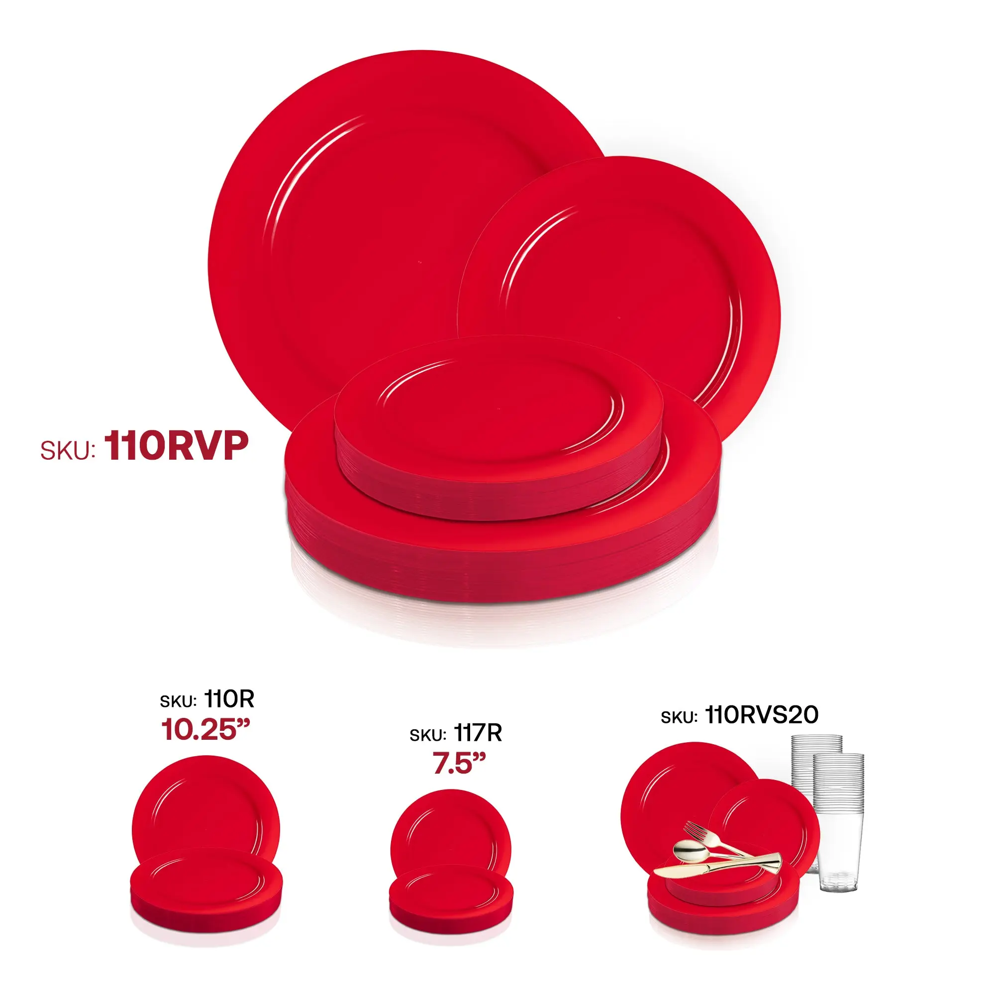 It's the perfect choice to provide your guests with a well-planned and elegant meal. This Round Disposable Plastic Dinnerware Value Set is an excellent choice for any special event or holiday celebration. Bright and festive redness has been added to make the entire table look festive and colorful. This value set is an excellent choice for any special occasion or holiday party.