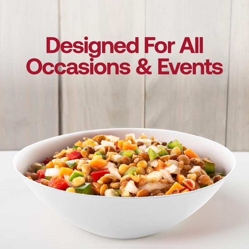 The party table is the heart of every occasion, so it seems only right that it should be dressed to impress. What you need is a premium piece of dinnerware that will fulfill your desires for beauty as well as quality, like these fantastic disposable plastic organic soup bowls that will instantly enhance the tempting lure of your delicious specialties and make them look even more enticing. The unique style, solid white design, and classic round shape of these fantastic soup bowls will embellish any table decor of your party, making them an exceptional choice for special events such as wedding receptions, birthday parties, cocktail parties, bridal bashes, baby showers, dinner parties, holiday feasts, banquets, professionally catered events, and more.