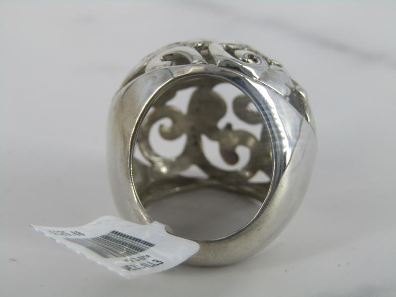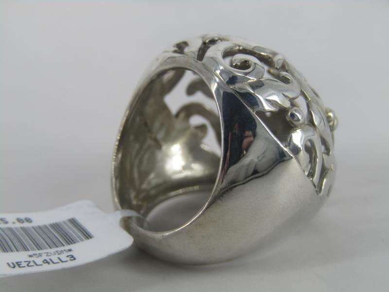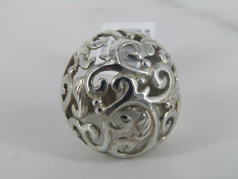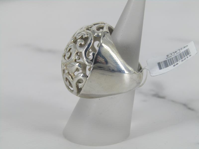 Sterling Silver round domed ring with open work swirls design.