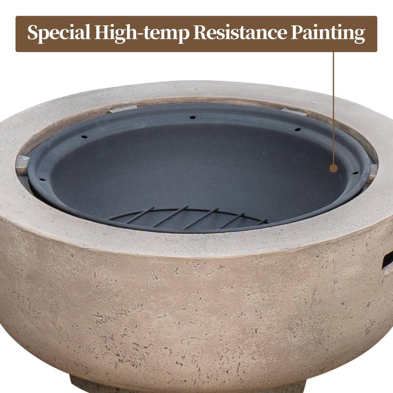 Ovios 23.62'' Round Magnesium Oxide Wood Burning Light Brown Fire Pit Portable