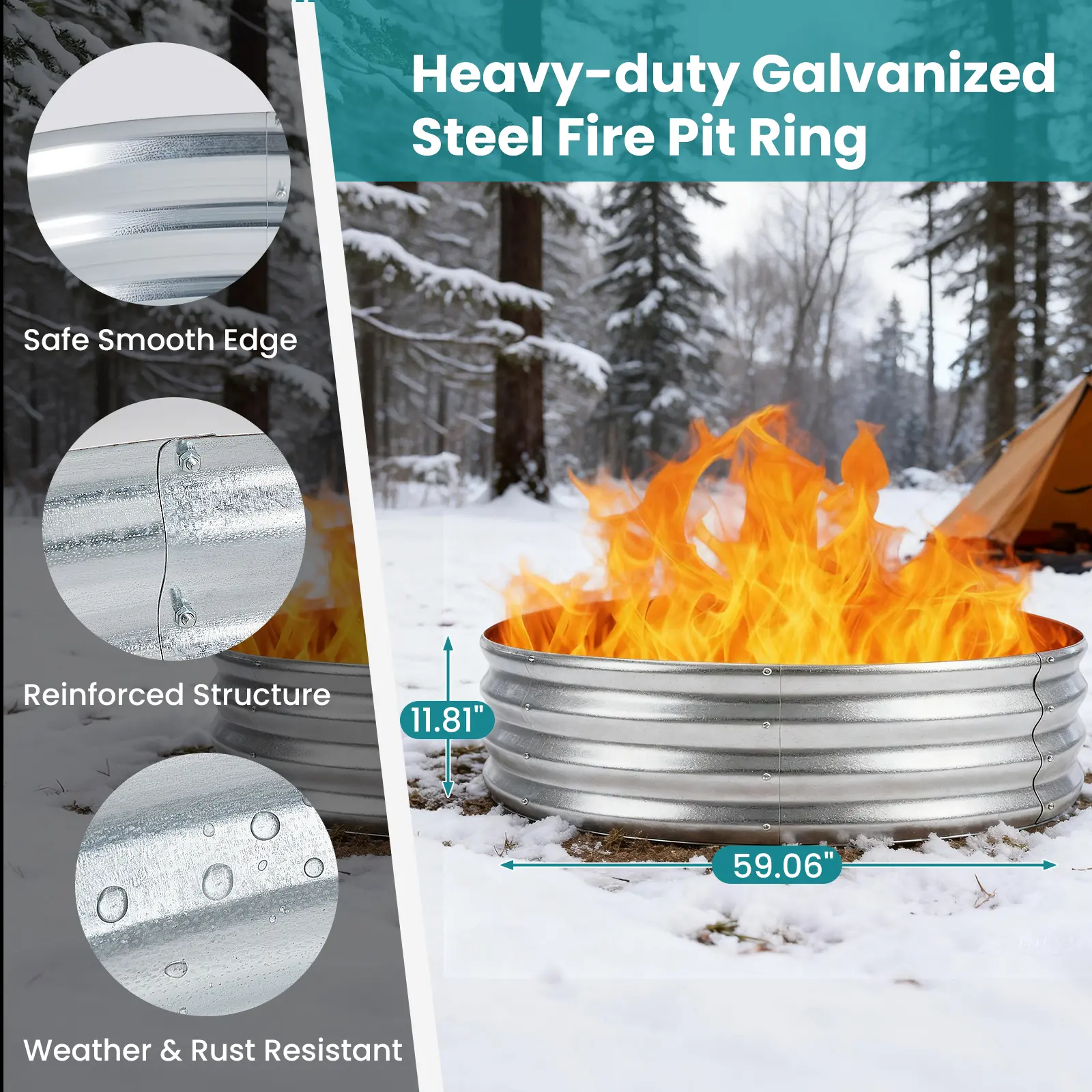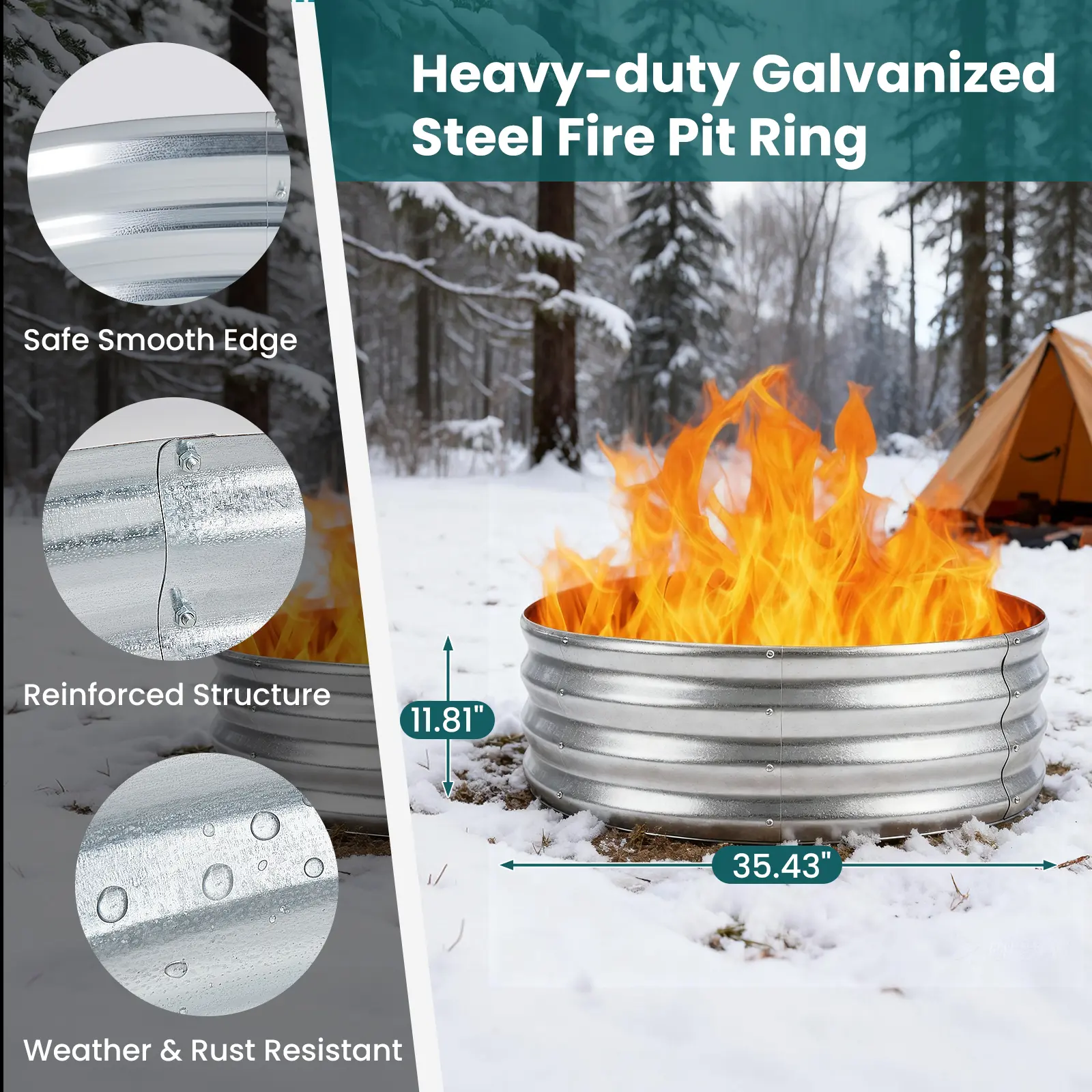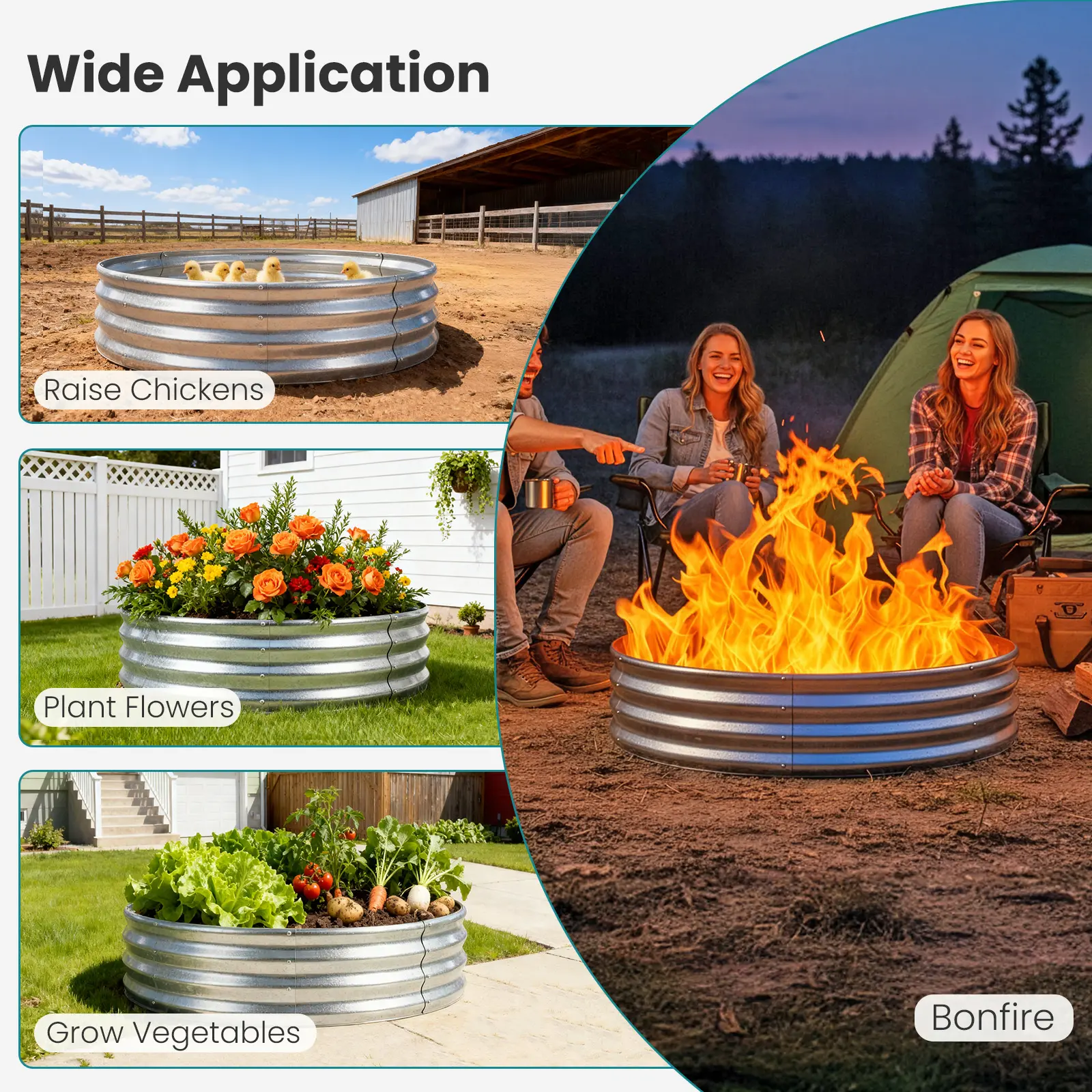 ·Sturdy Construction: The galvanized steel helps contain flames safely within the fire pit ring, reducing the risk of sparks or fire spreading.