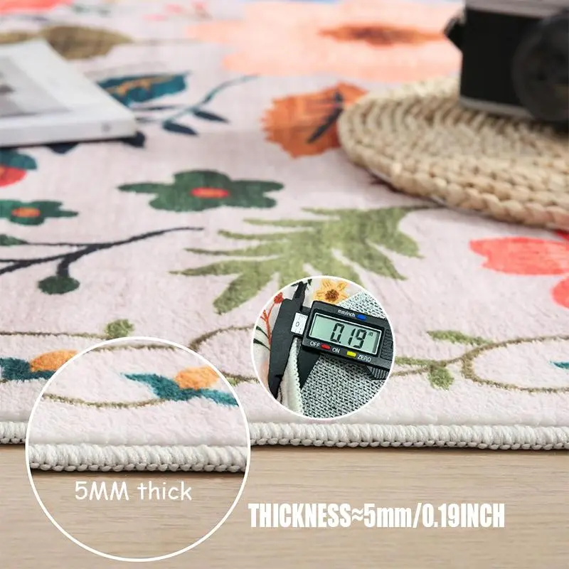 Super softttt! Not the thinnest rug which is great. Love the design! Looked around a lot for one that’s best price and quality for the size I wanted. Non slip. But I still got a pad for extra cushion. Comfort: 8/10 (only cuz it’s not thick but not paper thin!. Color: 10/10 Beautiful.