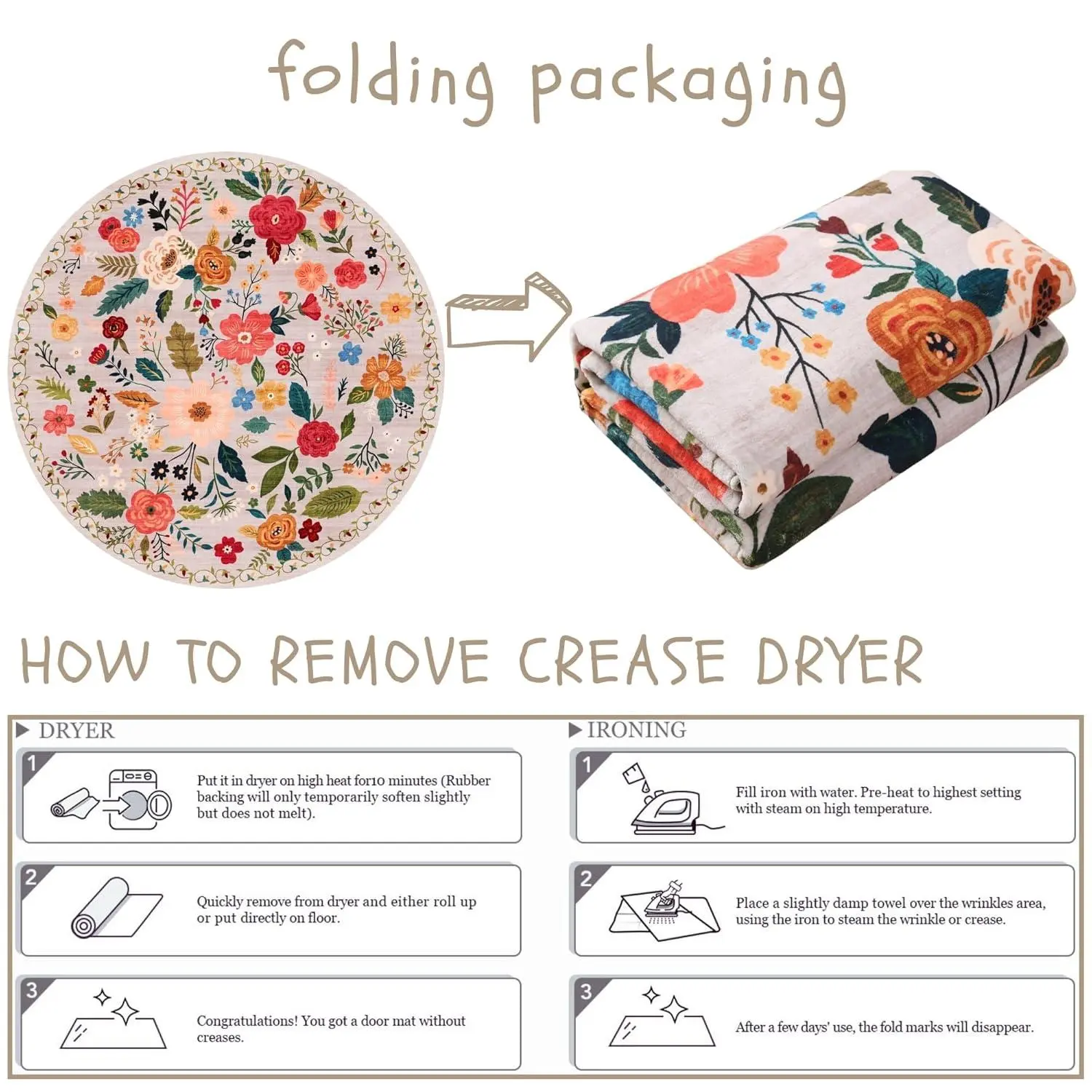 Material & Comfort: Soft, durable and wipable/washable. Usage Experience: Perfect right out of the package. Size & Fit: Larger than expected (a good thing). Durability: Nice backing on the rug but still washable. Ease of Cleaning: Wipes down easily.