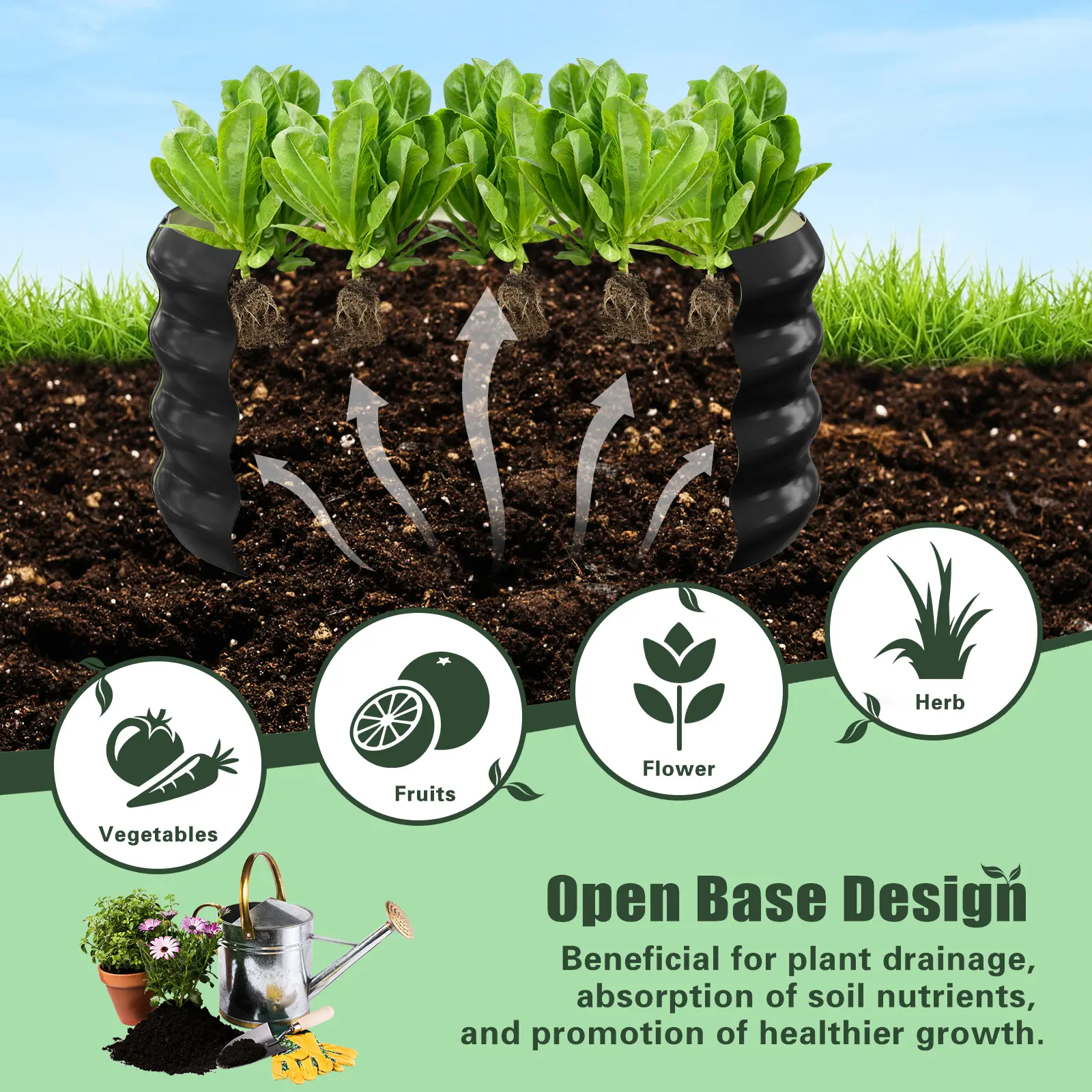 ·Built to Last: MOPHOTO raised garden bed is made of galvanized metal plate and coated with multiple layers of powder coating for long-lasting durability. Wave structure and round shape, rust-proof and durable, can stay in contact with the soil for a long time and resist corrosion