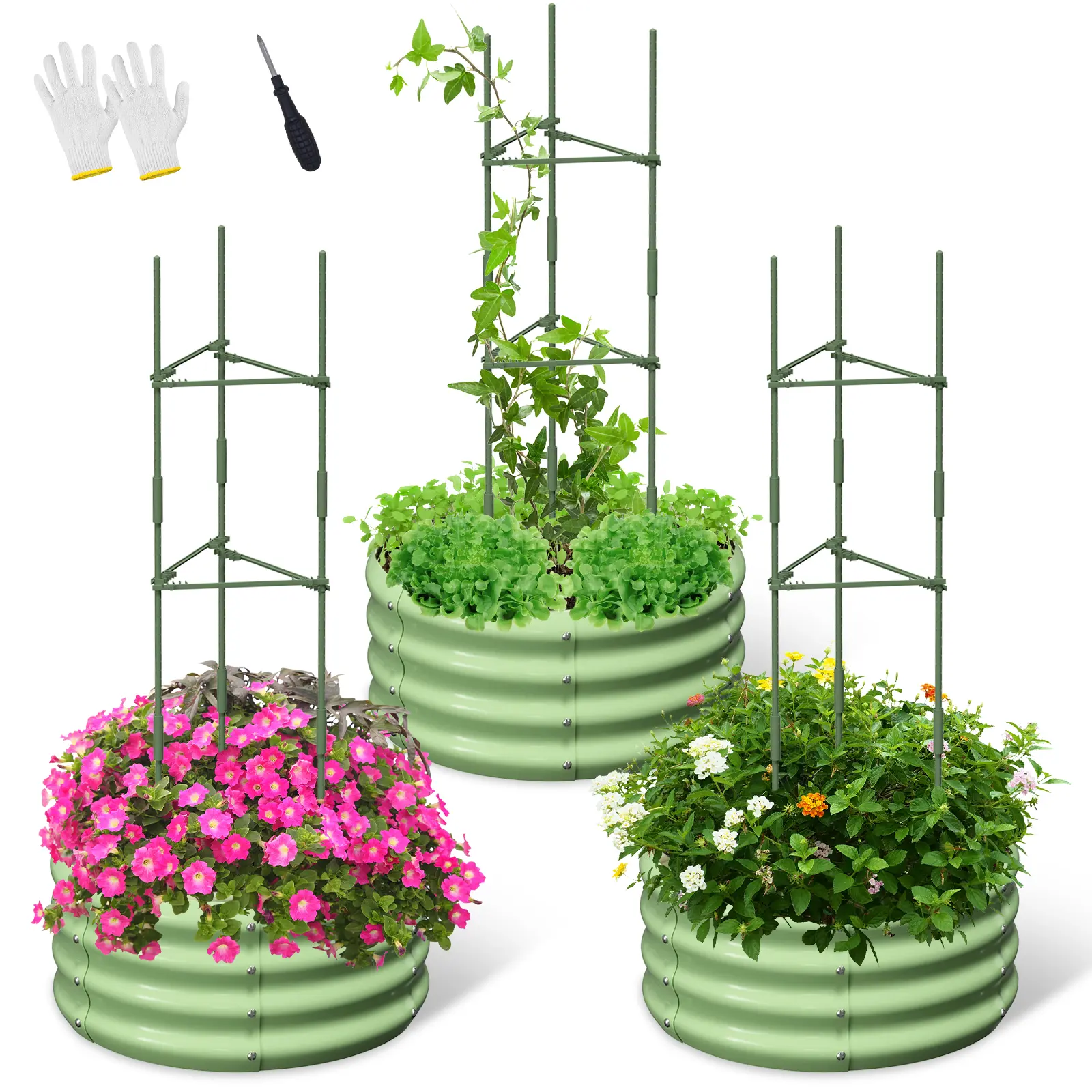 ·3Pcs Raised Garden Bed Kit: The size of the plant bed is 23.6"L x 23.6"W x 11.8"H. This round planter box provide ample growing space to raise vegetables, flowers and plants. Round galvanized raised garden beds are perfect for placing in your garden. Create a neat and clean planting area