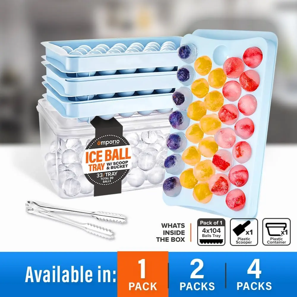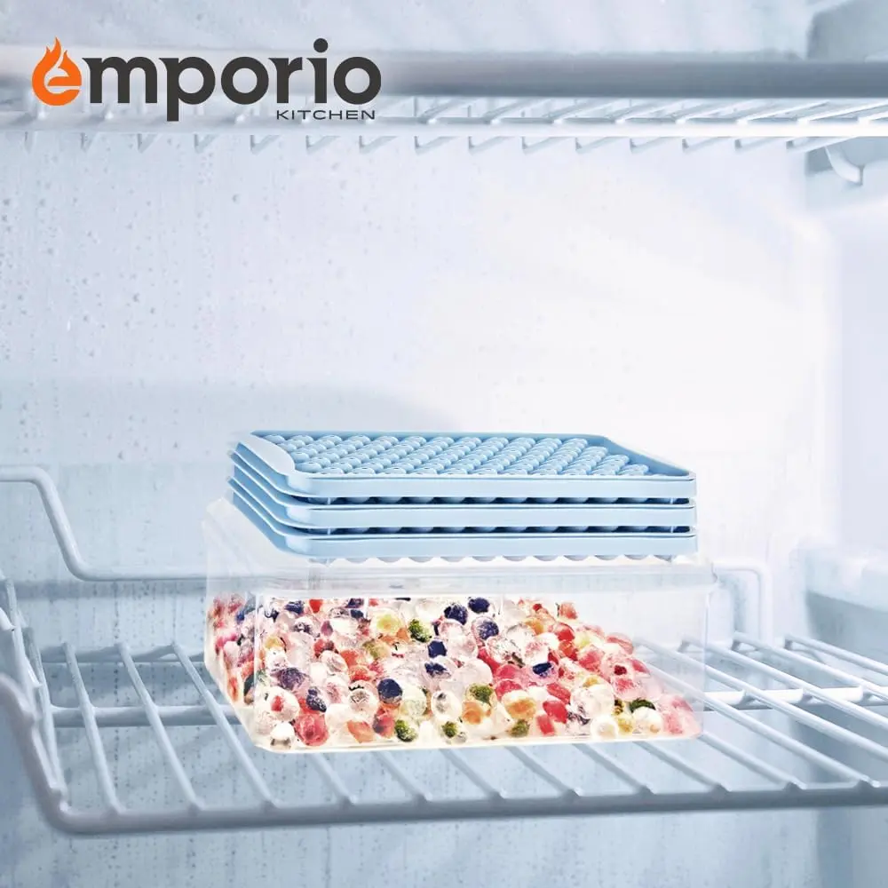 Round Ice Cube Tray with Lid & Storage Bin – Makes 99 Easy-Release 1.1" Ice Balls – Stackable Silicone Ice Tray for Cocktails, Whiskey, Drinks & Parties Classic Plastic