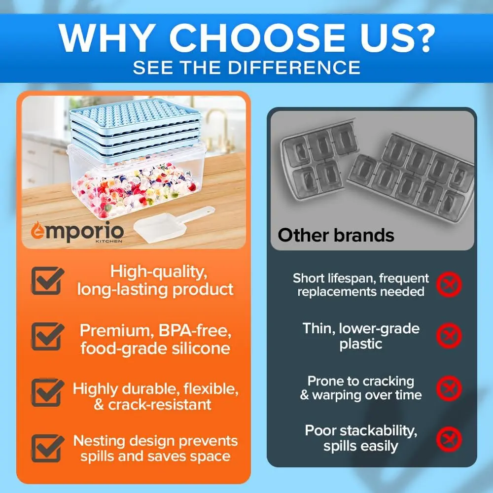 ·Complete Set: Includes 3 stackable trays, 1 storage container, and 1 ice tong for convenience. Tray size: 9.25” x 6.30” x 3.94”.