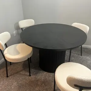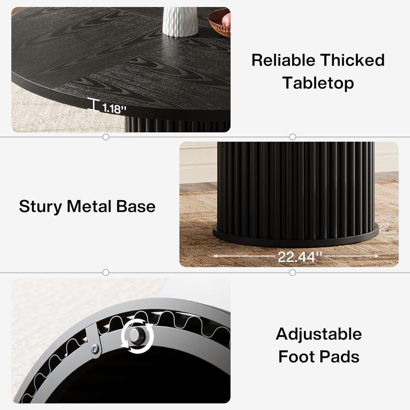 𝐌𝐨𝐝𝐞𝐫𝐧 𝐄𝐥𝐞𝐠𝐚𝐧𝐜𝐞: The round dining table features a uniquely textured tabletop and a fluted design base, bringing a touch of mid-century modern charm to your home. The classic black finish seamlessly complements any decor, making it a timeless addition