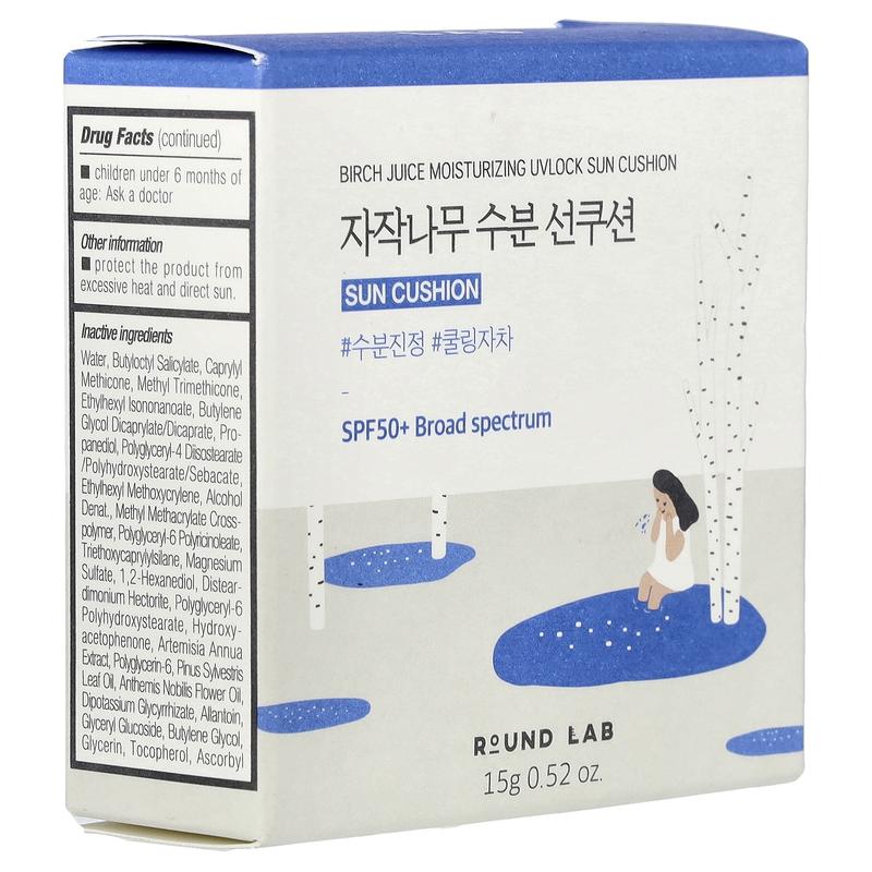 5. Round Lab Birch Juice Moisturizing UVLock Sun Cushion, SPF 50+, 0.52 oz (15 g)
