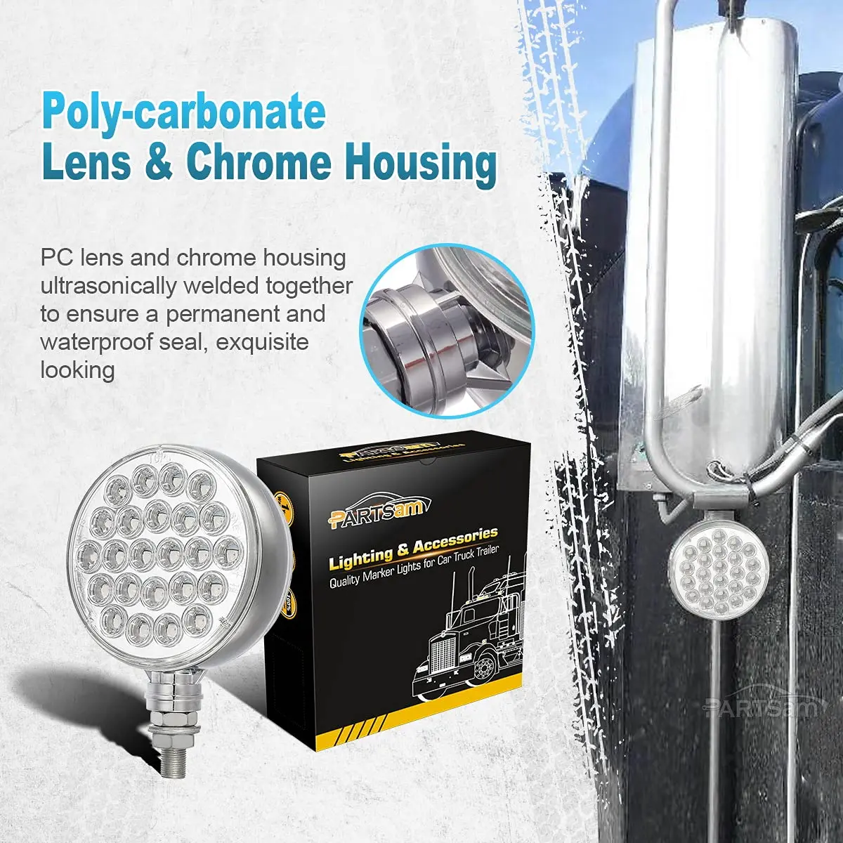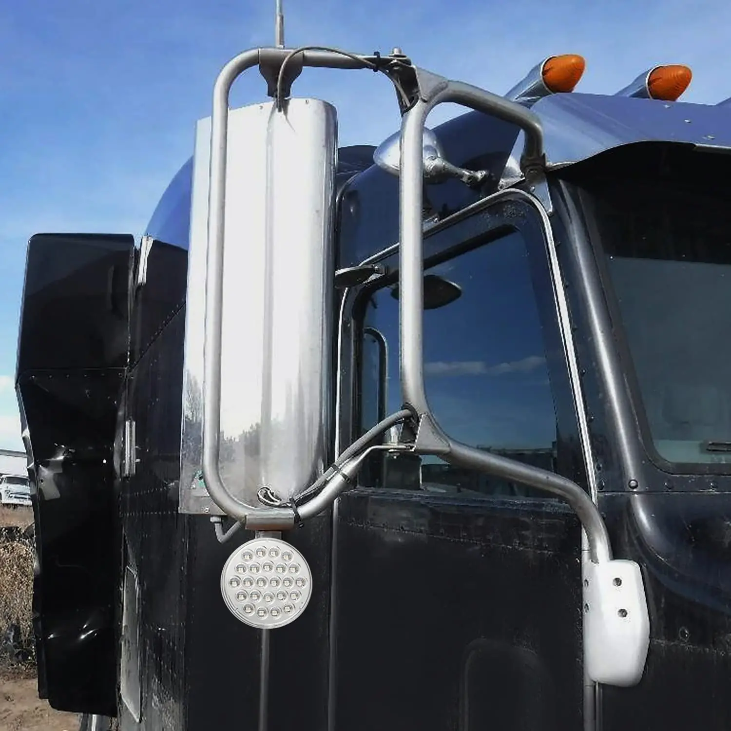 This double face led turn signal light can fit for heavy-duty trucks like fender signal lights, T300 T600 T660 T680 T700 T800 W900 fender turn signal lights, 378 379 386 387 389 579 587 fender turn signal lights. People often hang this pedestal led lights form the mirror mounting arms. You can mount this truck lights everywhere like Trucks Towing Trailers as well as the size fit.