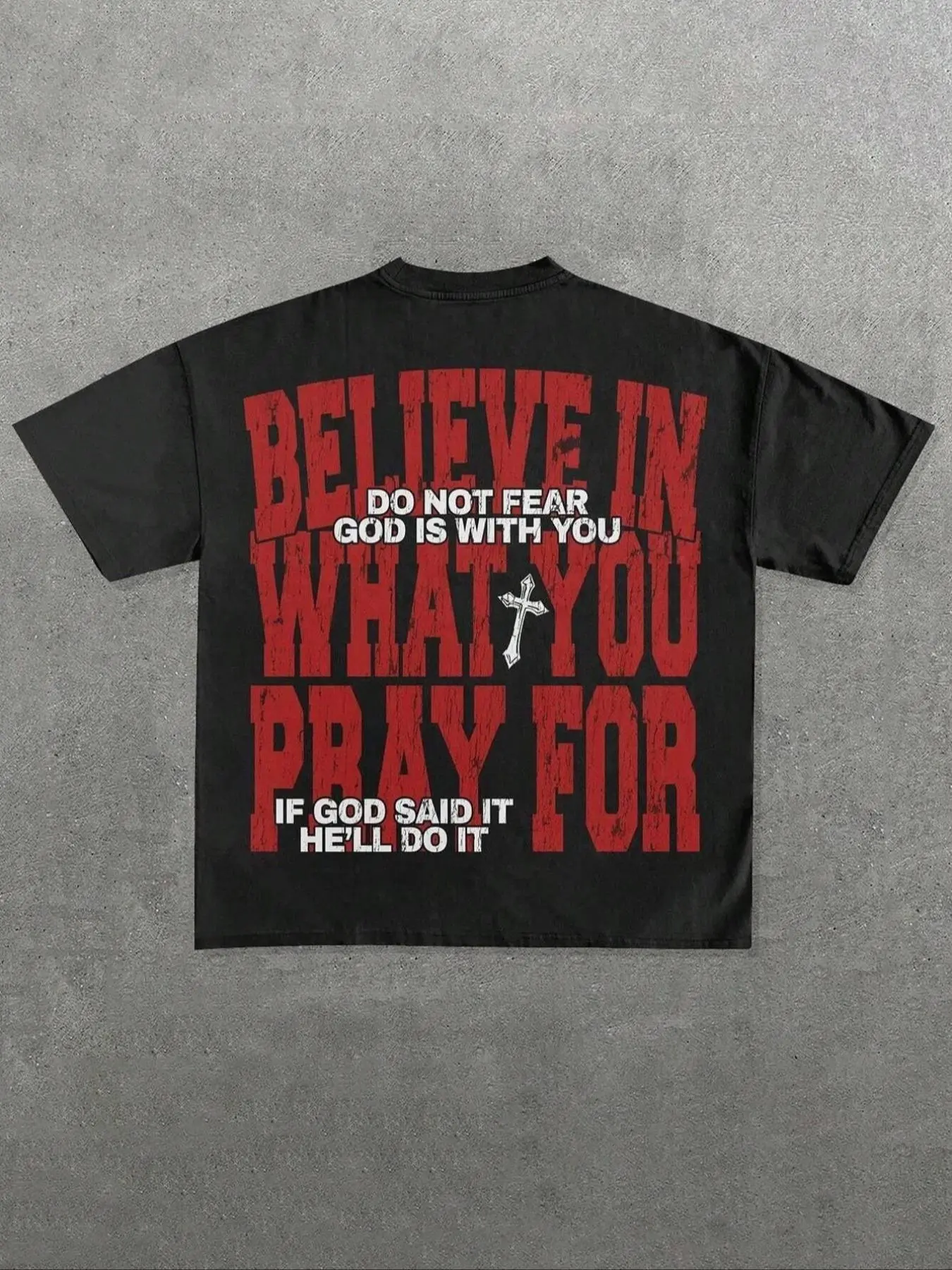 "Men's Slogan & Cross Print Tee | Bold Style Alert I #MensFashion #GraphicTee #SloganTee #CrossPrint #CasualStyle