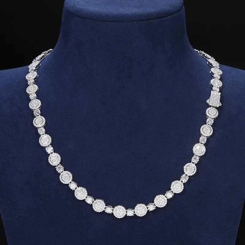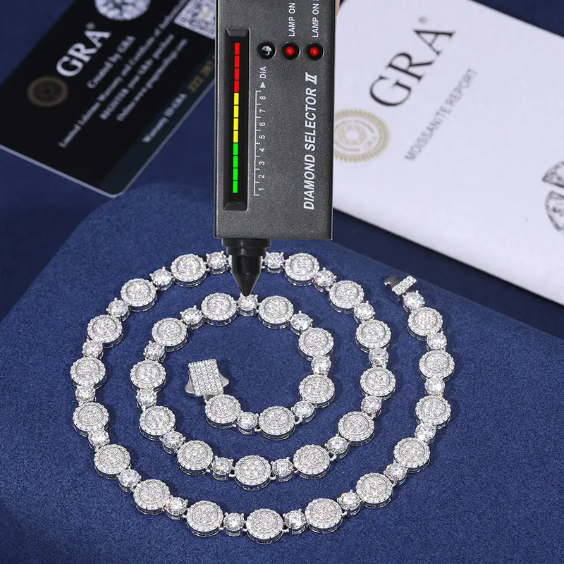 This chain was a 10 out of 10 very beautiful just like he explained it was diamond tested it myself pass the diamond test. I love the quality is not too heavy very light. The diamonds pop I love it will be purchasing something else again.
