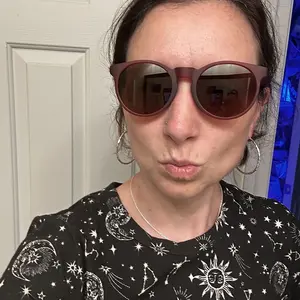 These dark, pastel-ish red works a lot better than youâd think on paper. If youâre wearing anything beige or a not super vibrant red, these shades are an excellent compliment. Theyâre a little classier than most other circle Gs but still super eye-catching. I love âem.