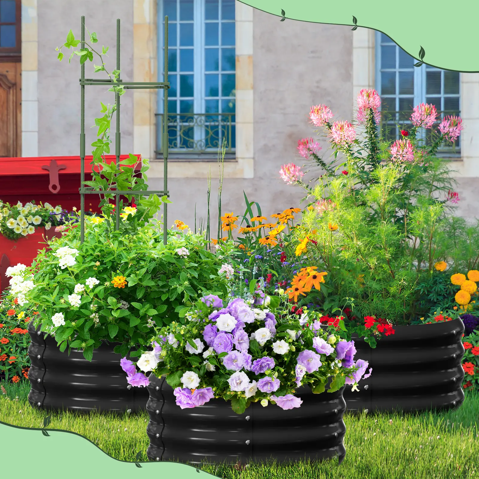 【Open Base Design】: This planter raised garden bed metal galvanized is designed with an open base, which can effectively avoid water accumulation and decay, protect the roots of plants, and allow the roots to better absorb nutrients