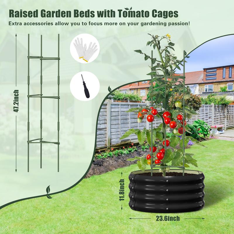 【3Pcs Raised Garden Bed Kit】: The size of the plant bed is 23.6"L x 23.6"W x 11.8"H. This round planter box provide ample growing space to raise vegetables, flowers and plants. Round galvanized raised garden beds are perfect for placing in your garden. Create a neat and clean planting area