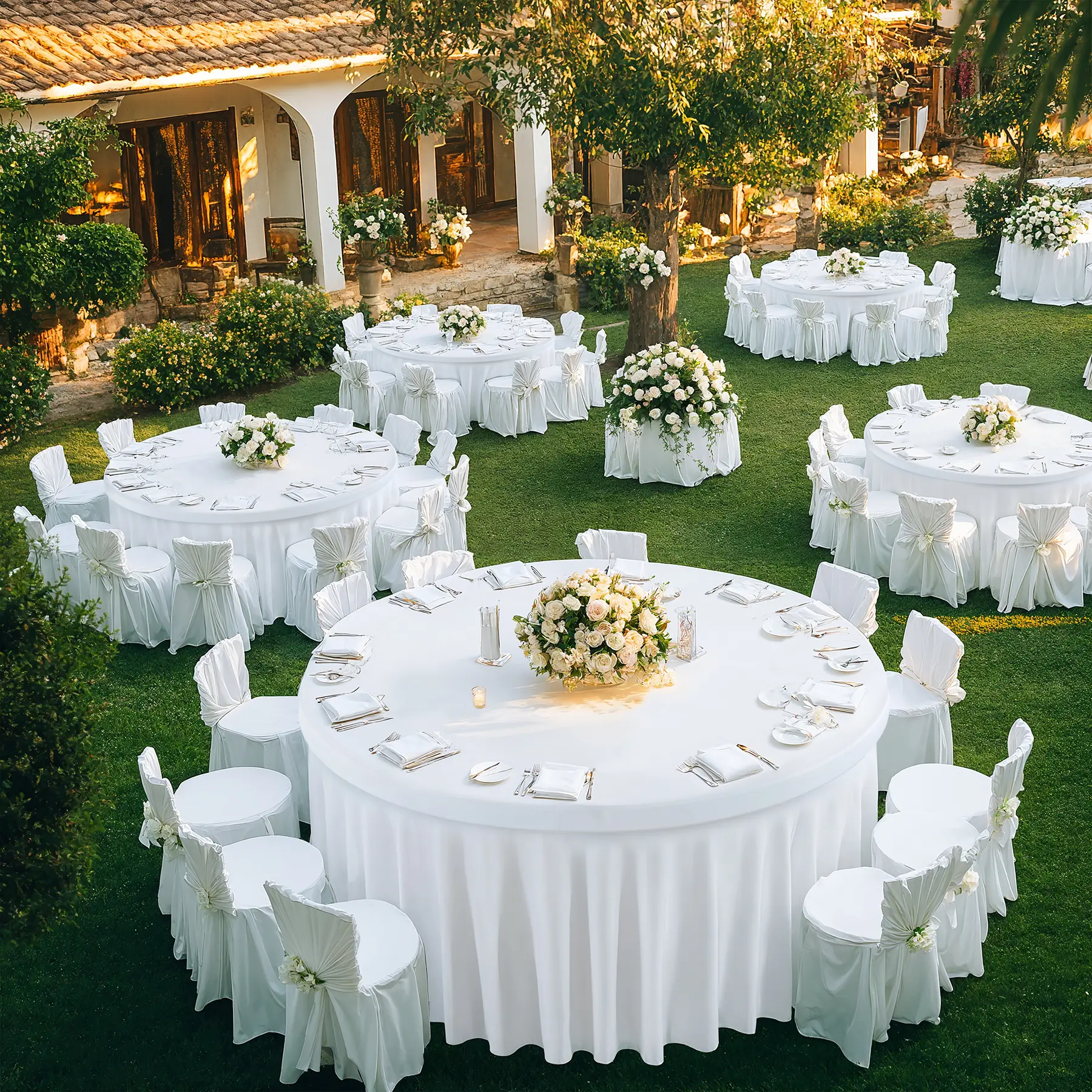 White Round Table Cloth for Wedding Receptions, Birthday Party, Banquet, big events.
