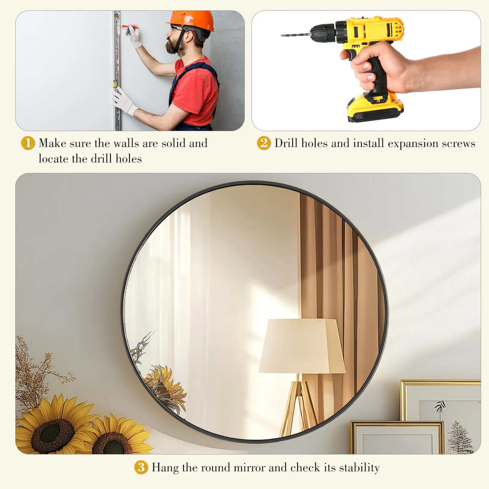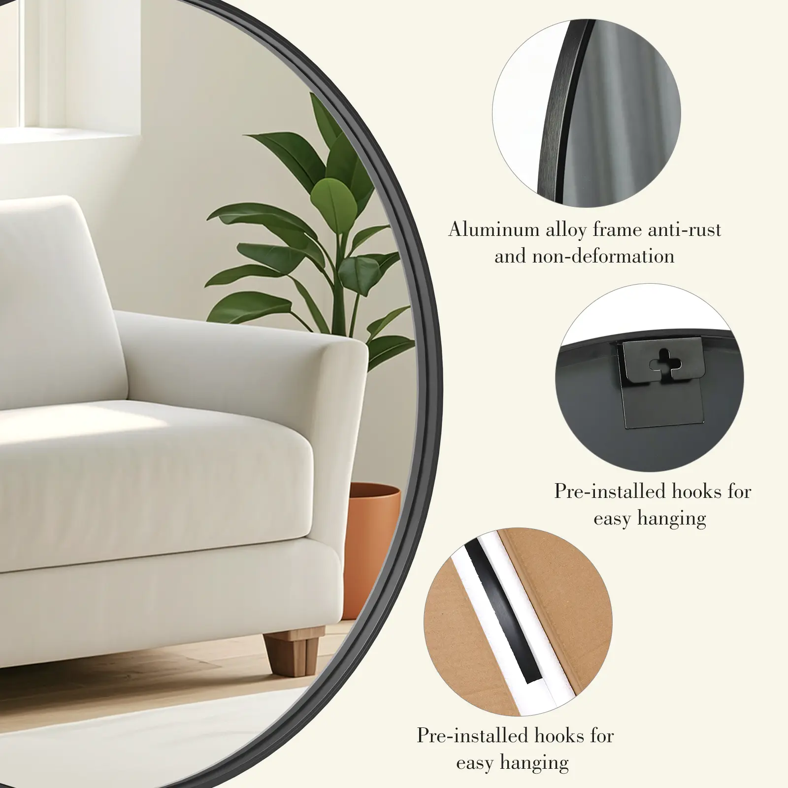Easy to Install:The round mirror can be installed easily. The hook is pre-installed and installation instructions are included in the package.