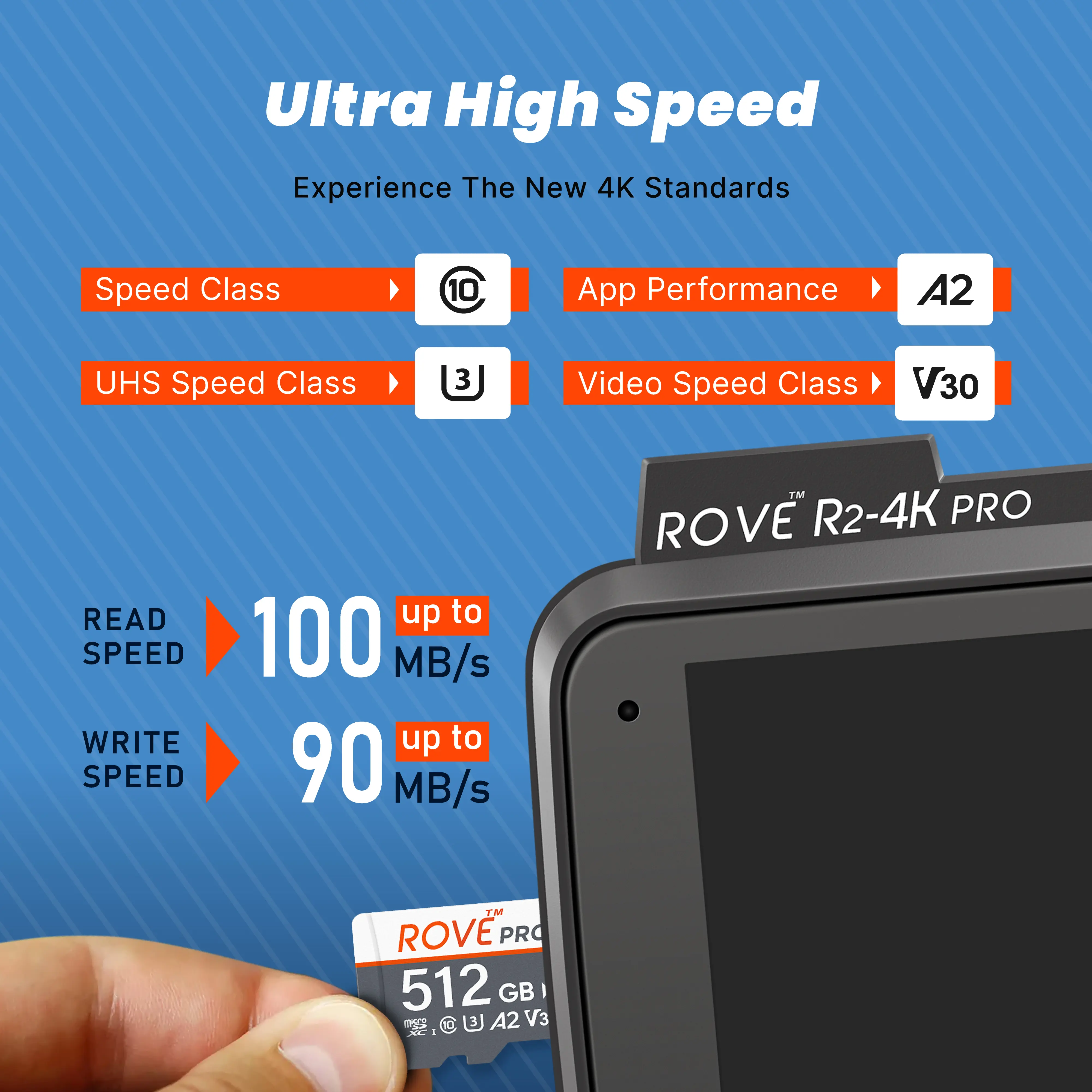 Ever struggled with slow memory cards that can't keep up with your 4K videos or app-heavy phone? The ROVE PRO microSD Card is here to save the day with blazing fast speeds—up to 100 MB/s read and 90 MB/s write. Whether you're capturing stunning 4K Ultra-HD footage, gaming, or just boosting your phone’s app performance with A2 rating, this card handles it all. It comes with a handy full-size SD adapter, so you can easily switch between devices like DSLRs, dash cams, or laptops. Built tough, it’s water, drop, temperature, and X-ray resistant, perfect for any adventure or everyday use. Available in 128GB, 256GB, and 512GB, the ROVE PRO keeps your data safe and your devices running smoothly. Ready to upgrade your storage? Grab your ROVE PRO microSD card and experience reliable speed and durability wherever life takes you!