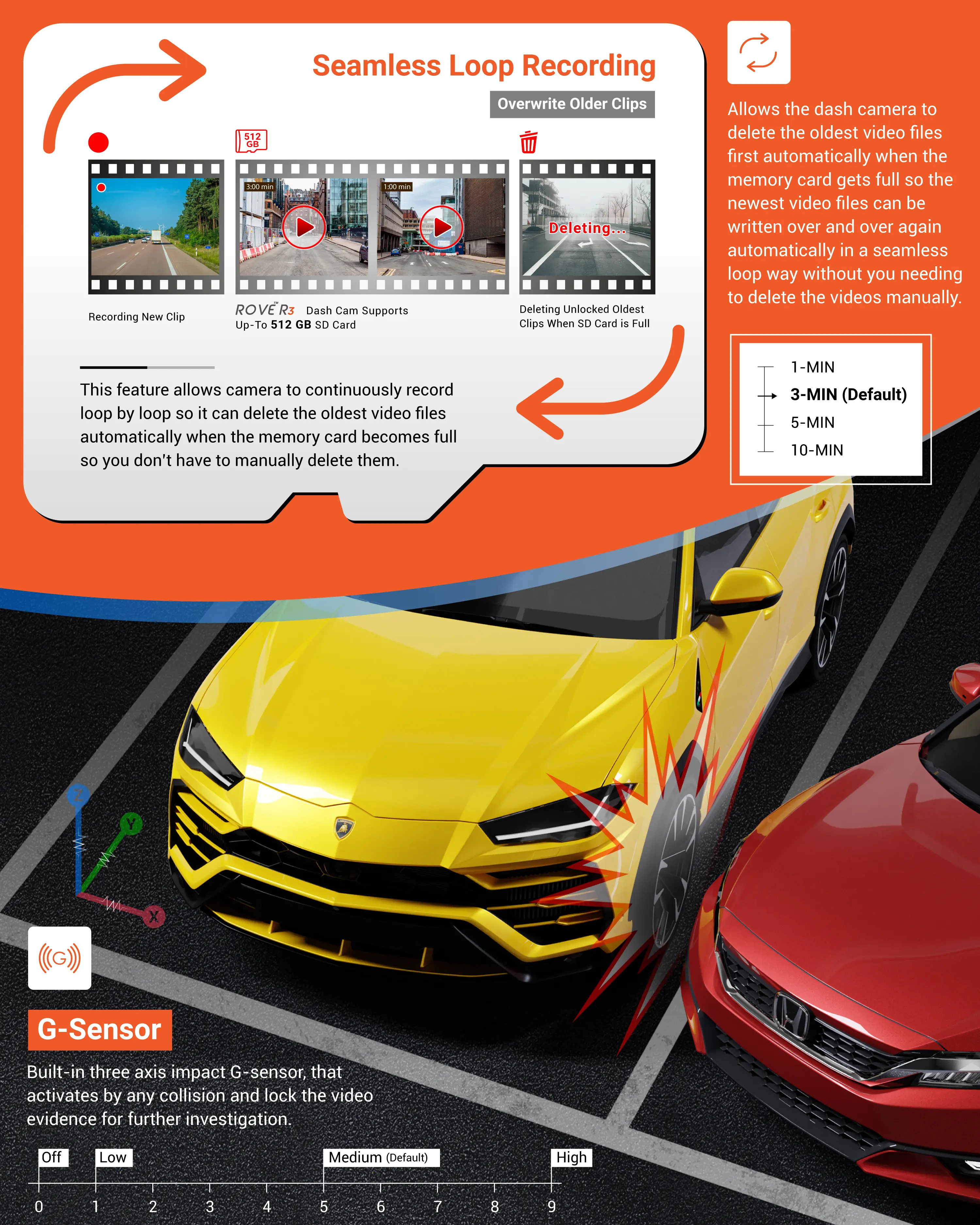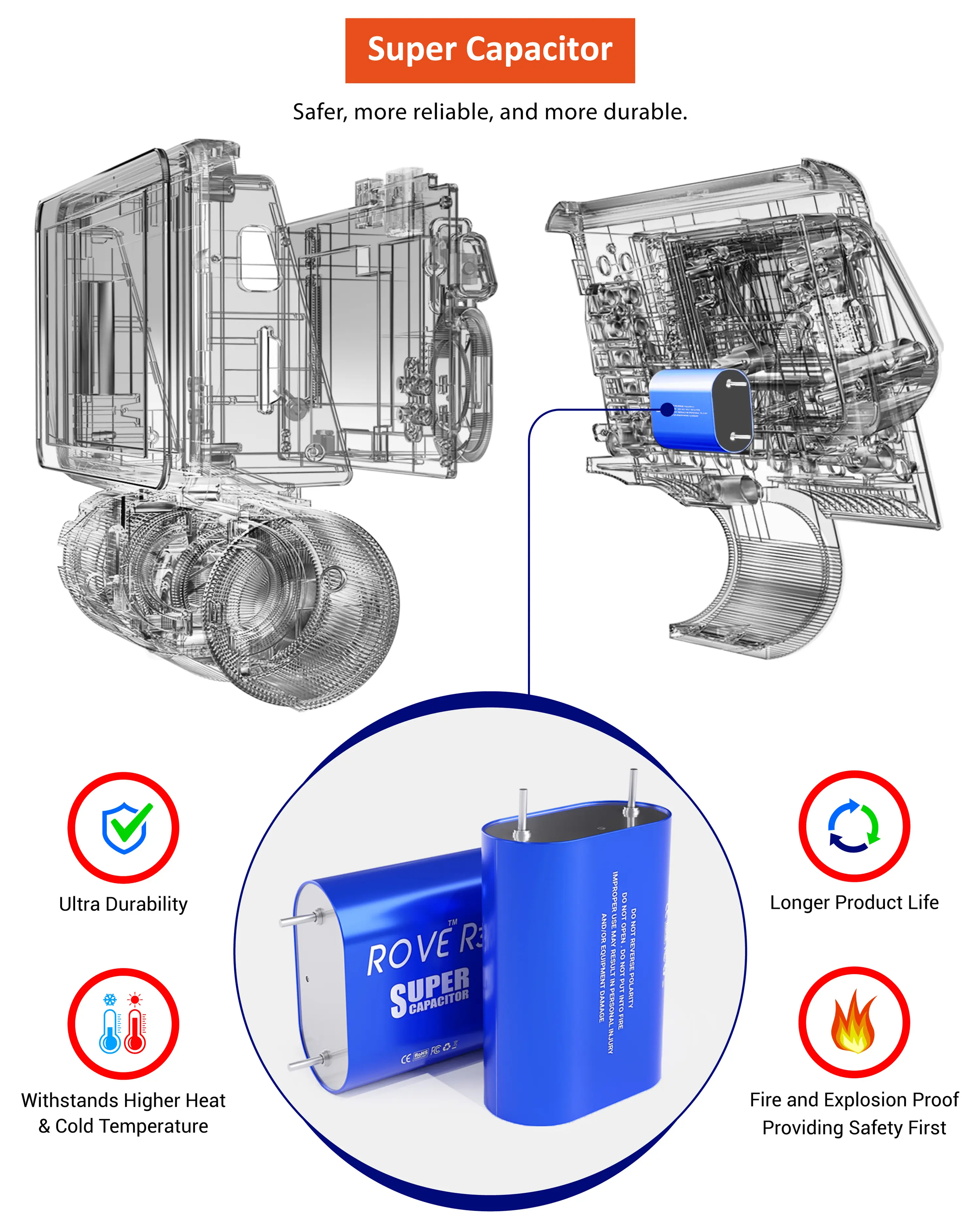 Your safety is our priority. The ROVE R3 is equipped with a supercapacitor ensuring reliability in extreme temperatures (-4°F to +158°F). This unique power source extends the dash cam's lifespan, outperforming traditional lithium-ion batteries.