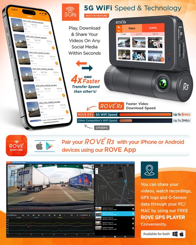 What sets the ROVE R3 apart is its user experience. The 5.0 GHz Wi-Fi facilitates seamless video viewing via the ROVE APPs, providing a unique ROVERS experience. Hold the ROVE R3, and you'll feel the difference – a dash cam that's not just a necessity but a statement of safety and sophistication on the road. Choose the ROVE R3 for a drive that's not just recorded but remembered.