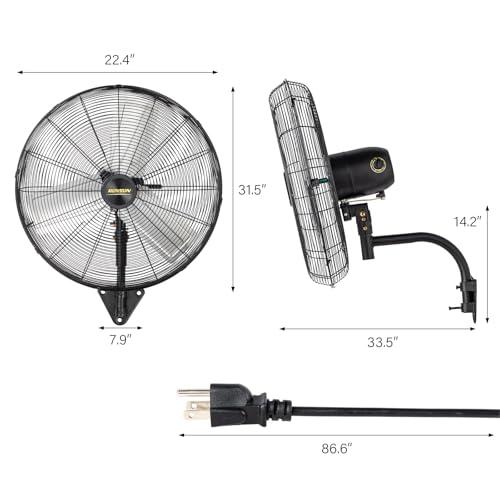 5. ROVSUN 18/20/24/30 Inch Industrial Wall Mounted Fan, Max 10600 CFM High Velocity Wall Mount Fan, Heavy Duty Fan w/ 3 Speed Settings, Aluminum Fan Blade & Dual Ball Bearing Motor,Wall Fan For Garage, Gym, Piano
