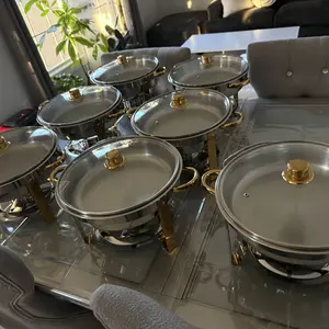 To keep food warm, add hot water to the water tray. For cooling, use an ice water mixture. The set is versatile for various catering needs, making it an essential for any event. Enjoy the convenience of a transparent glass lid and the added elegance of gold handles and frames.