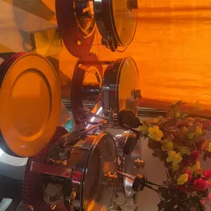 The ROVSUN 5 Qt round chafing dish buffet set boasts a gold accent, adding a touch of elegance. Perfect for weddings, parties, banquets, and catering events. The set includes sturdy frames, glass covers, water pans, food pans, fuel holders, lid holders, and drip trays. It's NSF certified for safety.