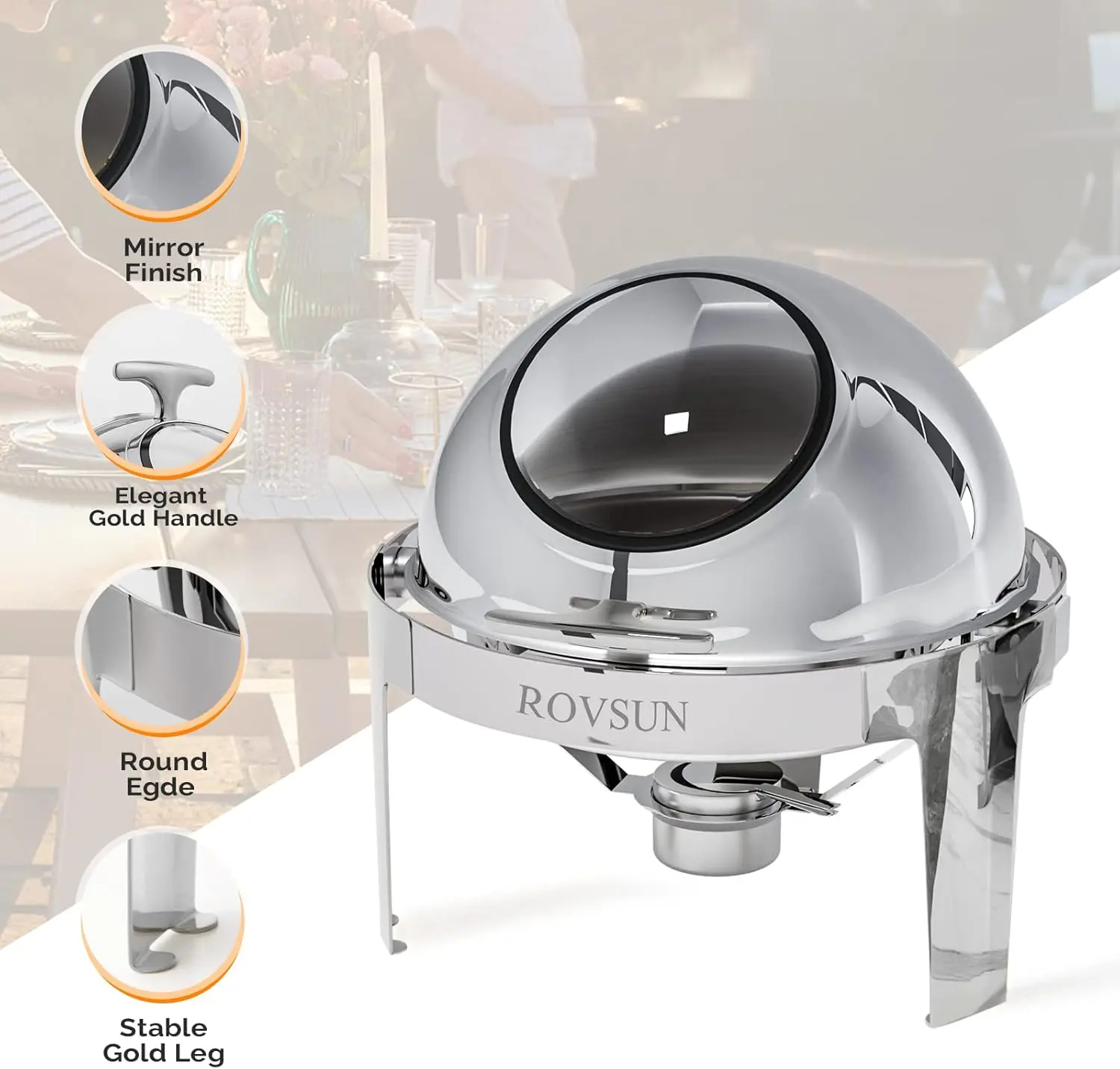 The roll top chafing dish is perfect for buffets, hotel breakfast and brunch areas, wedding, parties, banquets and any events.