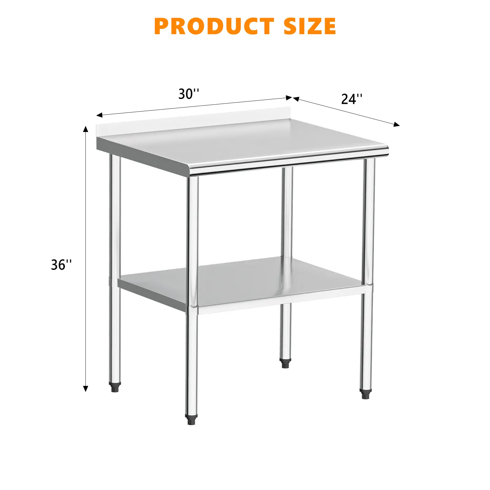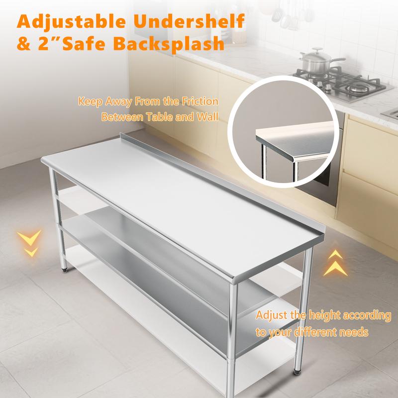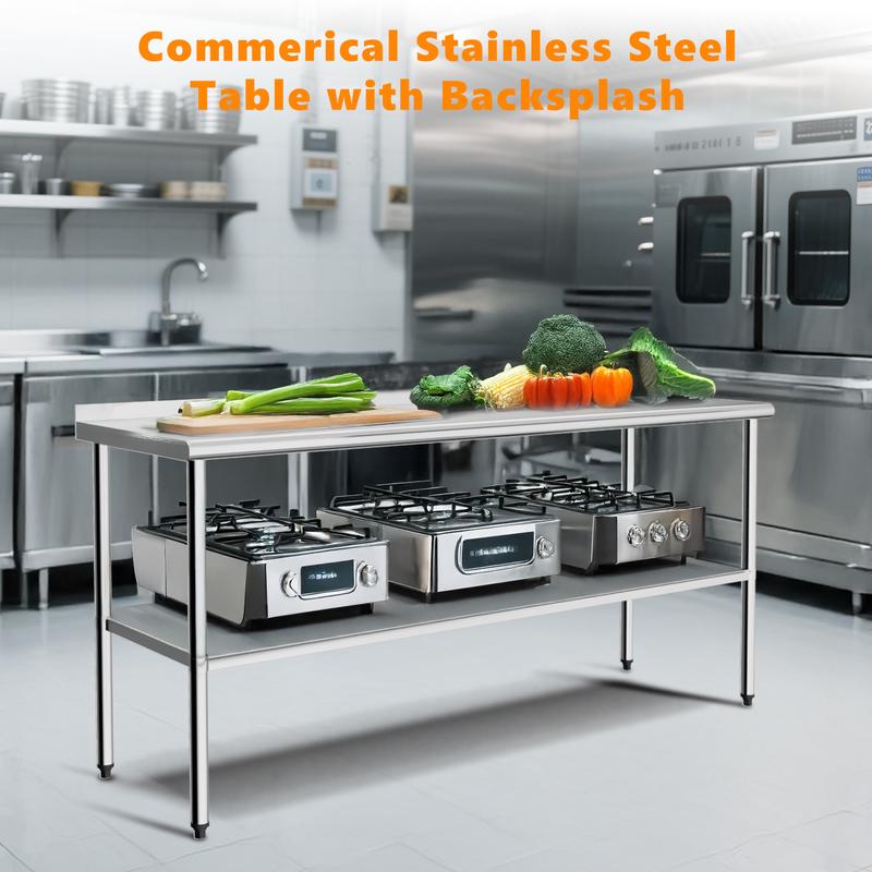 ·Package Includes: 1 x Stainless Steel Work Table with Backsplash, 4 x Wheels