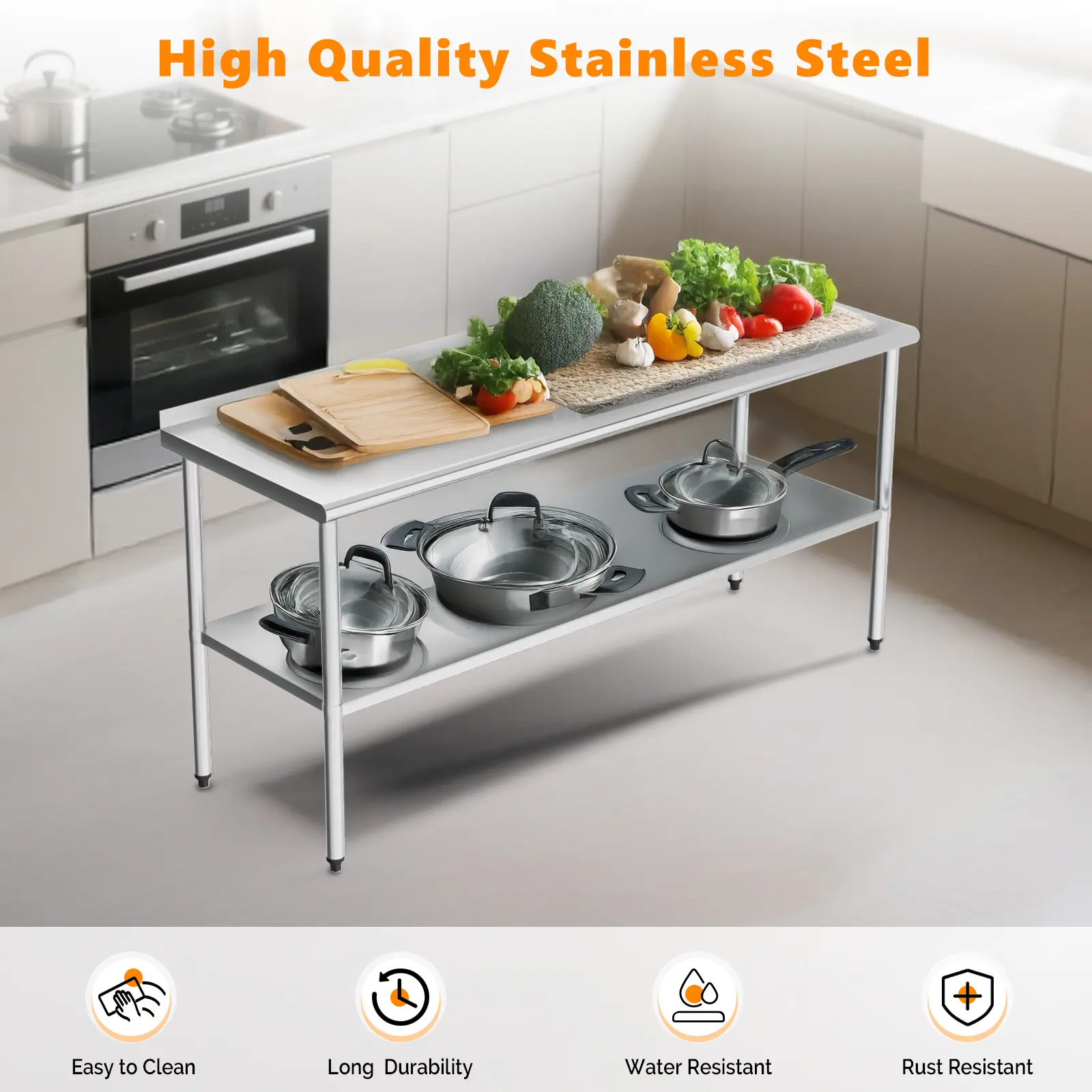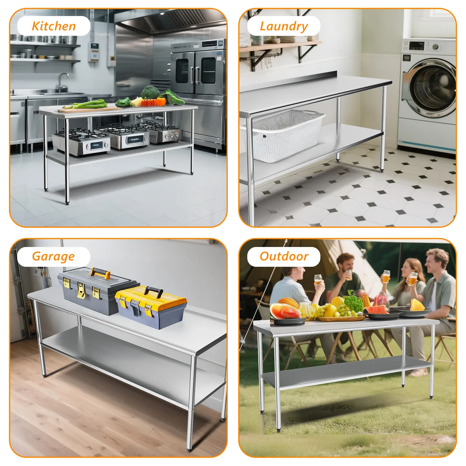 ROVSUN Stainless Steel Work Table: Versatile, Durable, and Easy to Install