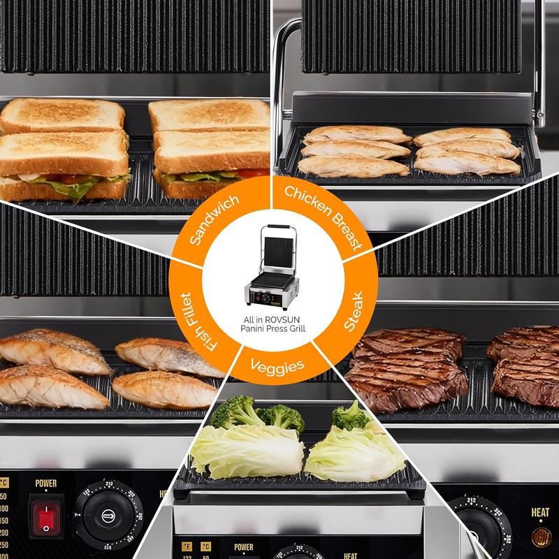 ROVSUN Commercial Panini Press Grill, Stainless Steel Electric Countertop Sandwich Maker with Adjustable Temp 122°F–572°F, For Steak, Burgers, Home & Restaurant Use, 110V, SilverROVSUN Commercial Panini Press Grill, Stainless Steel Electric Countertop Sandwich Maker with Adjustable Temp 122°F–572°F, For Steak, Burgers, Home & Restaurant Use, 110V, SilverROVSUN Commercial Panini Press Grill, Stainless Steel Electric Countertop Sandwich Maker with Adjustable Temp 122°F–572°F, For Steak, Burgers, Home & Restaurant Use, 110V, SilverROVSUN Commercial Panini Press Grill, Stainless Steel Electric Countertop Sandwich Maker with Adjustable Temp 122°F–572°F, For Steak, Burgers, Home & Restaurant Use, 110V, SilverROVSUN Commercial Panini Press Grill, Stainless Steel Electric Countertop Sandwich Maker with Adjustable Temp 122°F–572°F, For Steak, Burgers, Home & Restaurant Use, 110V, Silver
