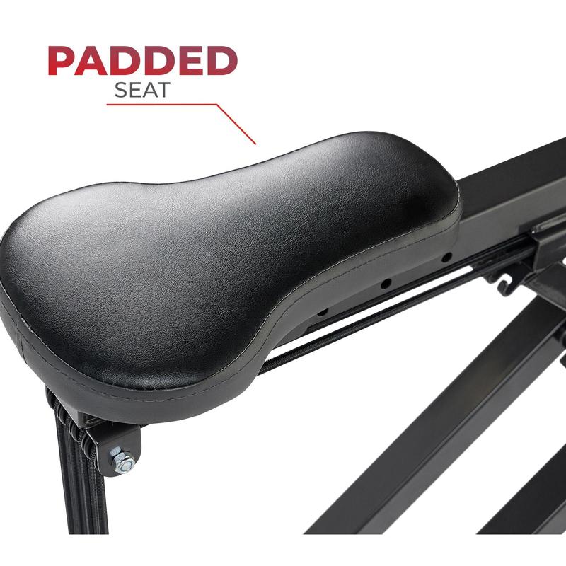 Develop and tone key muscle groups with this space-saving rowing machine that promotes compound movements for an efficient calorie burn. From Sunny Health & Fitness.