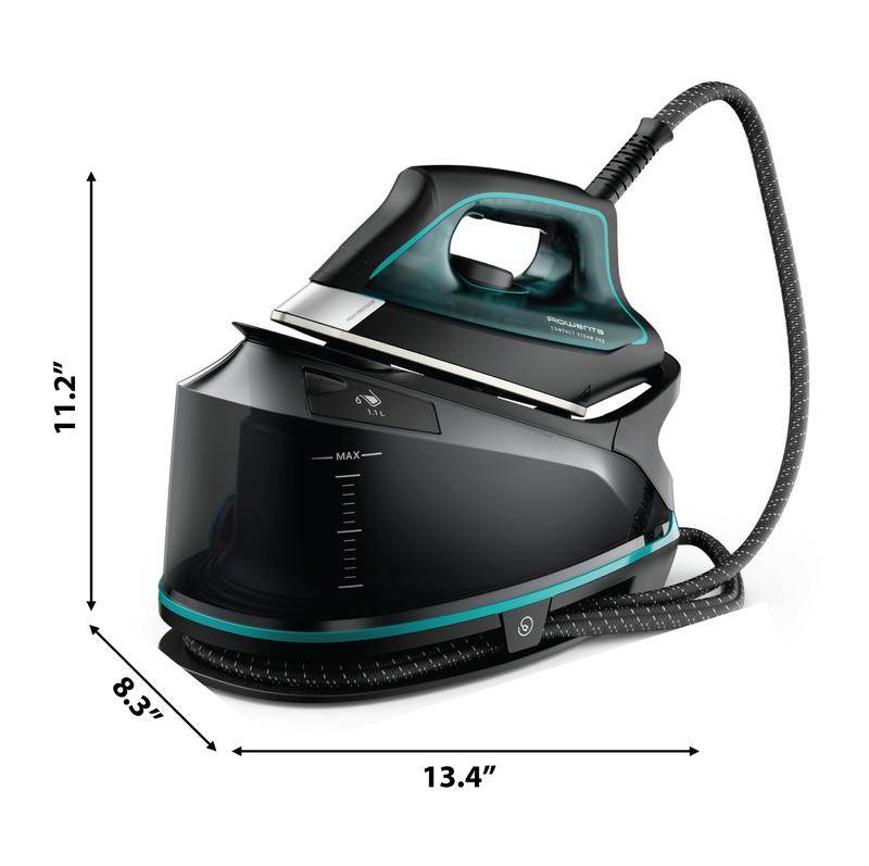 Forget constant refills. The large 1.1L (37-oz) water tank provides long-lasting steam performance, ideal for extended ironing sessions without interruption. His voltage is 120 and his power 1800 watts.